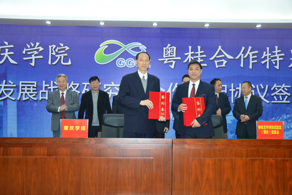 試驗區黨工委書記張浩在致辭中表示,建立發展戰略研究院是貫徹落實省委書記胡春華同志提出的創新驅動戰略的要求,也是粵桂合作特別試驗區現實發展的迫切需要。近年來,肇慶學院領導多次到封開縣進行考察、派遣師生頂崗支教、派青年干部掛職,通過多種形式支持封開社會經濟發展,為今后合作打下堅實基礎。雙方將秉承平等互利、共同發展的原則,搭建合作發展平臺,試驗區會積極配合,為肇慶學院開展科學研究提供各項服務。希望肇慶學院繼續發揮好學科建設、科學研究、人才資源等的優勢,積極支持地方經濟社會發展。