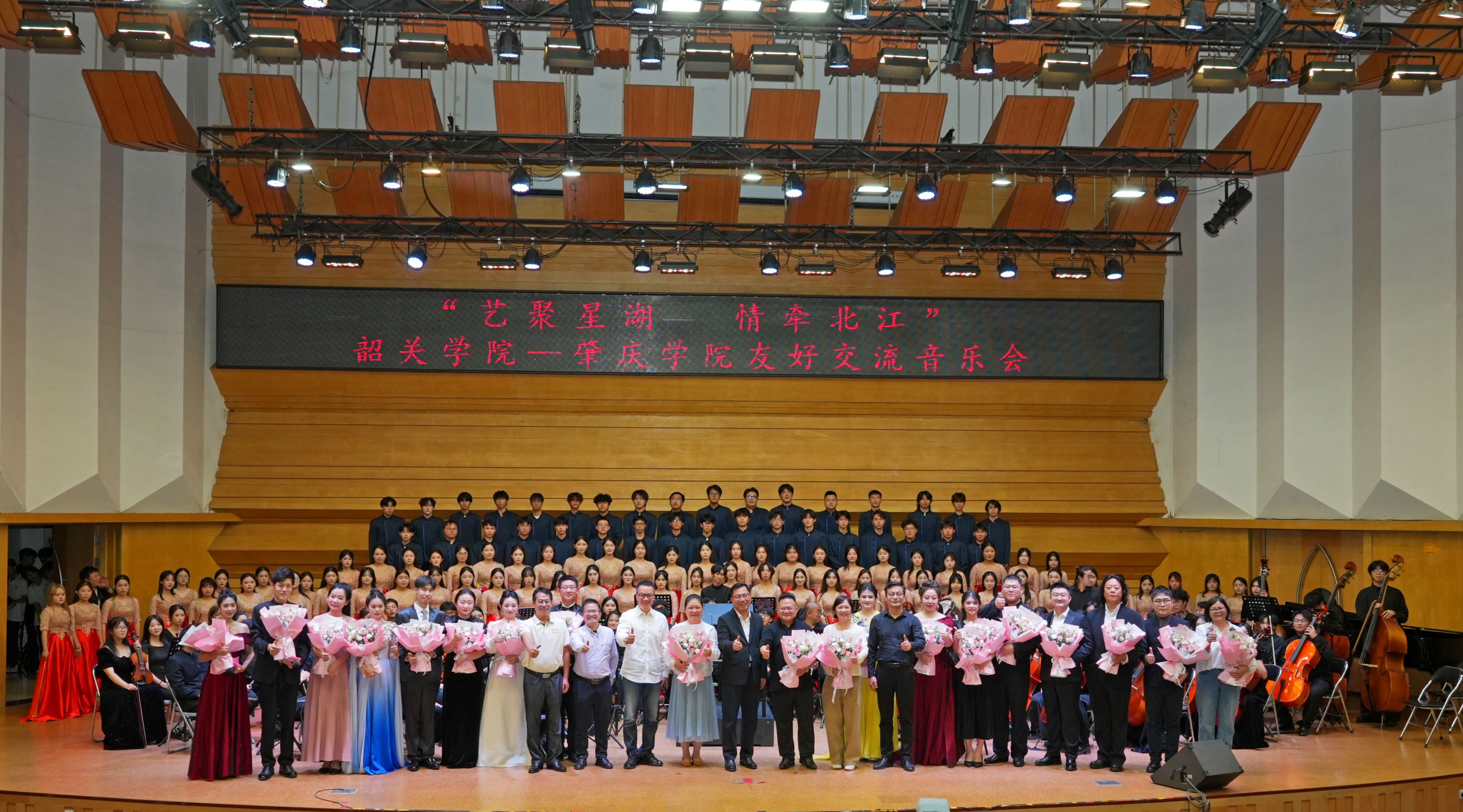 作為同屬粵地的兄弟院校,肇慶學院與韶關學院多年來深耕高等教育領域,在學科建設、人才培養、藝術實踐等方面始終互學互鑒、互促共進。本次音樂會不僅是兩校藝術教育成果的集中展示,更是以藝術為橋深化校際友誼的重要實踐。從管樂合奏的恢弘開篇,到交響合唱的激昂收尾;從古箏、竹笛的傳統雅致,到鋼琴、歌劇的西洋經典,兩校師生用音符詮釋“友好交流”的主題,用技藝碰撞激發藝術靈感,為現場觀眾帶來思想與情感的雙重共鳴。