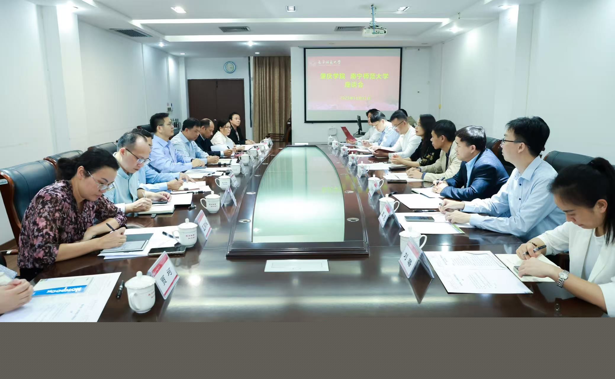 在南寧師范大學,校長隆廣慶系統介紹了“改大申博”經驗及“錯位發展、特色強校”戰略。通過主動避開與綜合性大學的學科重疊,聚焦“基礎教育、職業教育”兩大特色,依托“中國—東盟職業教育研究中心”“廣西職業教育發展研究中心”,打造了特色鮮明的師范教育科生態;同時以“申博”為支點,集中資源培育優勢學科、打造人才團隊。李琴表示,兩校同屬地方應用型高校,均面臨“資源有限、競爭激烈”的共性挑戰,錯位發展不是簡單的差異化,而是基于自身稟賦的精準定位,期待通過深化與粵港澳大灣區及粵桂合作示范區高校的合作,構建“資源共享-人才互聘-科研聯動”協同機制。