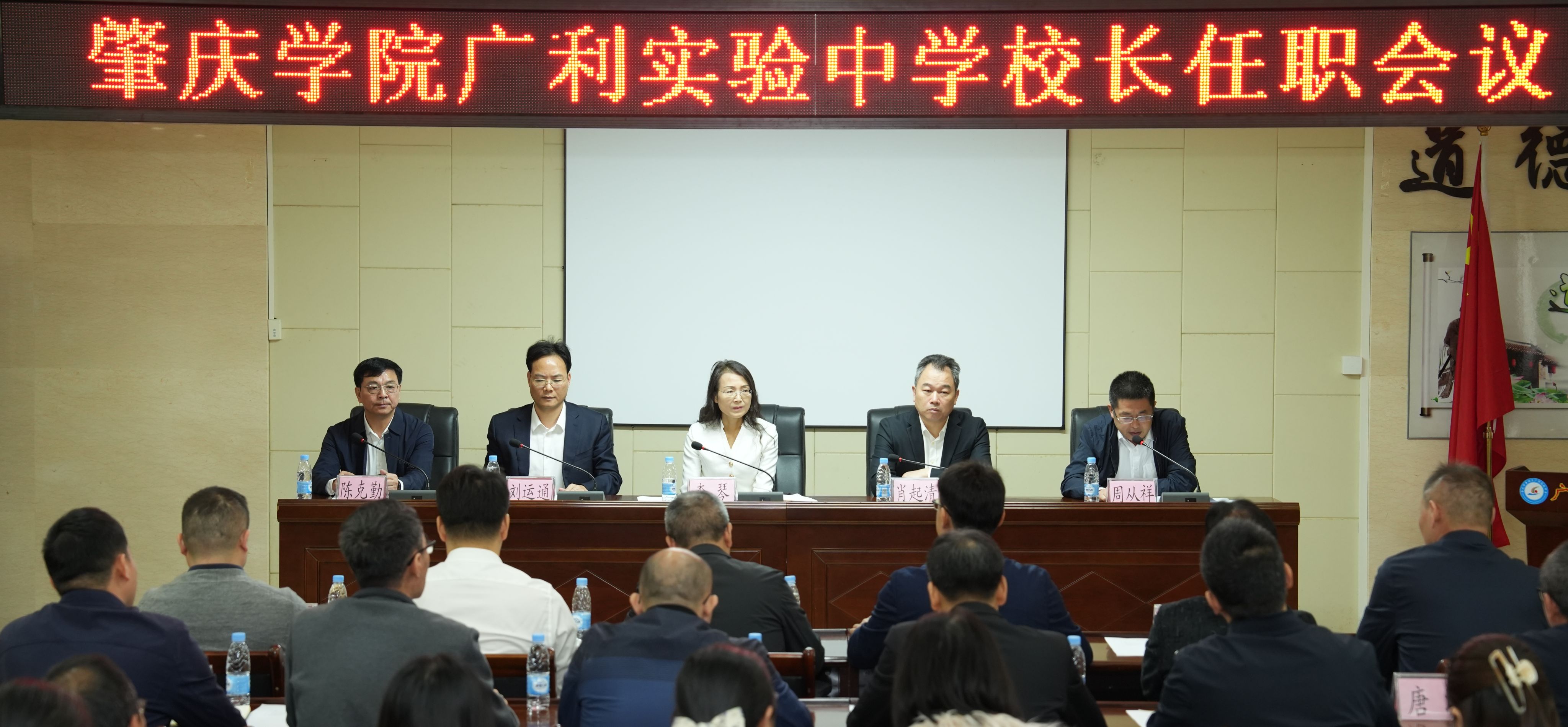 本網訊 11月3日,肇慶學院廣利實驗中學新校長任職會議在廣利實驗中學會議室召開,肇慶學院校長李琴、副校長肖起清,鼎湖區委書記劉運通、鼎湖區委常委周從祥出席會議,鼎湖區相關部門領導、學校相關部門主要負責人、肇慶中學校長楊榮、宣卿中學校長李小徐、廣利實驗中學新校長陳克勤、音體美學科首席專家、廣利實驗中學全體教師參加。