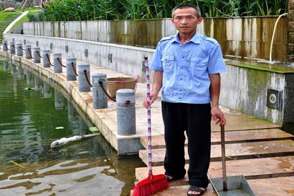 鄭義初:翰墨池的守護人——綜合服務中心管理員,男,工號HQC126,在校工作服務14年,負責翰墨池內道路、水體、樹木、草坪、相關設備設施的日常保潔、養護和排洪工作。目前整個翰墨池只有他一名專職清潔工,他每天做大量清掃工作,不辭辛勞往返傾倒垃圾,把翰墨池當作自己的“孩子”一樣來照顧,哪怕是草地角落的一根小煙頭,水中的一個瓶蓋,也不放過,還能主動勸阻滑草的人遵守規定、愛護公物、珍愛生命,雖工資不高,卻用實際行動詮釋著“最美員工”的含義。