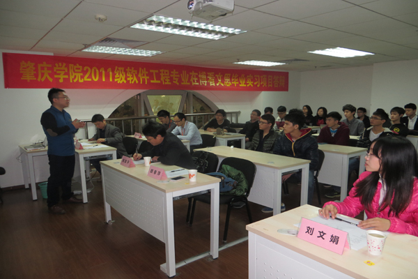 本網訊(軟件學院 通訊)繼9周校內專業實訓后,軟件學院組織2011級軟件工程專業學生赴企業再進行為期8周的畢業實習,實習結束之際,學院黨政領導、教師等兵分三路奔赴廣州拓勝計算機技術服務有限公司、東軟睿道教育信息技術有限公司、博看文思集團廣州分公司,聯手企業共同舉行實習總結與成果匯報會。