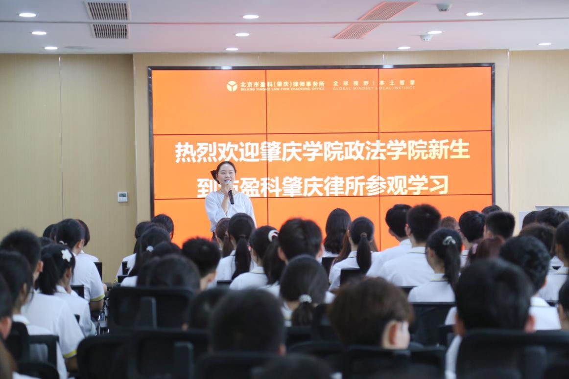 (北京市盈科(肇慶)律師事務所工作人員向參訪新生介紹律師業務的運行)