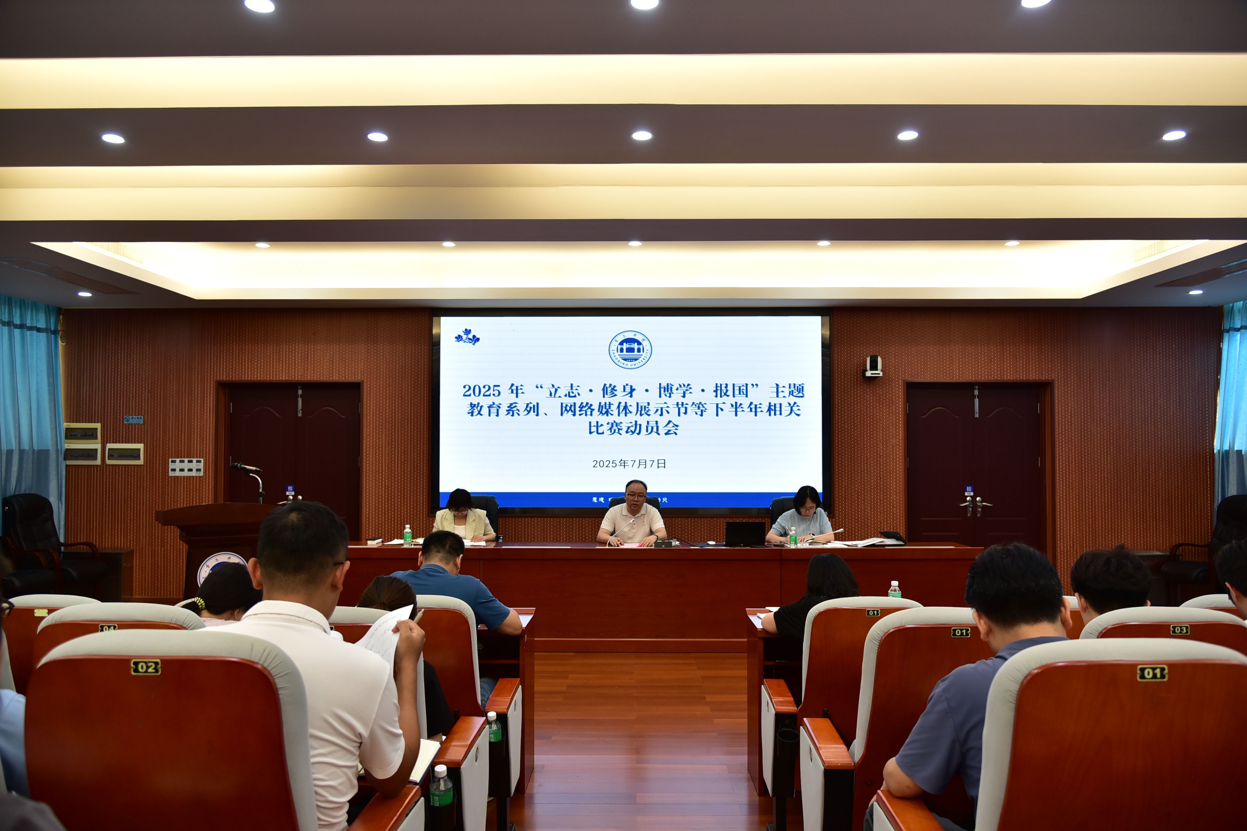 本網訊 7月7日,省級校園文化競賽備賽動員會在第二會議室舉行。校黨委委員、宣傳統戰部部長、黨政辦公室主任陳前,校團委書記馬舒潔,學生工作部副部長董業鳳,各二級學院團委書記、新聞宣傳員、易班指導老師、融媒體中心教師等參加會議。