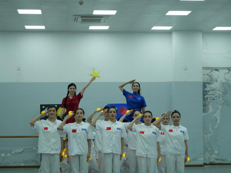 兩個作品是學前教育專業“幼兒舞蹈創編”課程的教學成果,作品創編歷時整個學期,所用道具均由學生創制,充分發揮了學生的團體協作精神,檢驗了同學們的專業扎實度。作品不僅展示了生動的課程思政教學成果,更是同學們提升專業認同感、職業成就感的重要載體。
