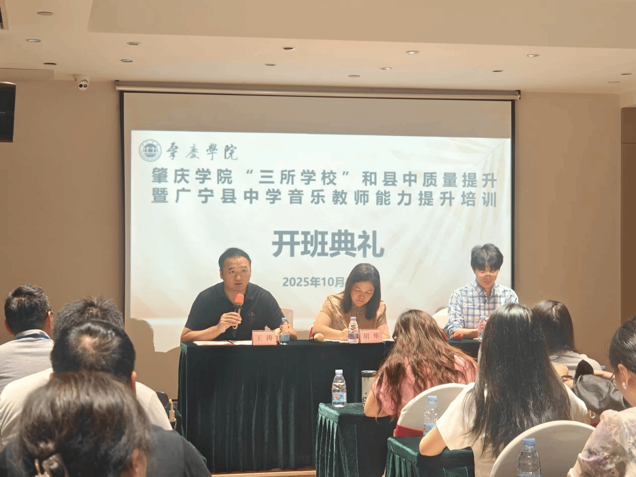 開班典禮上,音樂學院副院長王濤對本次培訓的總體安排進行介紹,并圍繞中學音樂教學的實際需求,從理論提升、教學創新等板塊為教師提出學習建議。最后,音樂學院黨委書記胡隼強調此次培訓是肇慶學院落實教育幫扶、推動縣域教育質量提升的重要舉措,并鼓勵教師們珍惜寶貴的學習機會,努力提升專業素養,助力廣寧縣中學音樂教育事業發展。