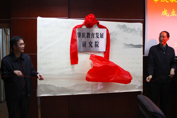 本網訊(記者 彭泰章 彭惠嬌 何婕妤)1月16日,由我校和肇慶市教育局聯合成立的肇慶教育發展研究院揭牌儀式在臨峰廳舉行。校長和飛、肇慶市教育局局長譚錦添共同為研究院揭牌。副校長周蘇平出席活動。
