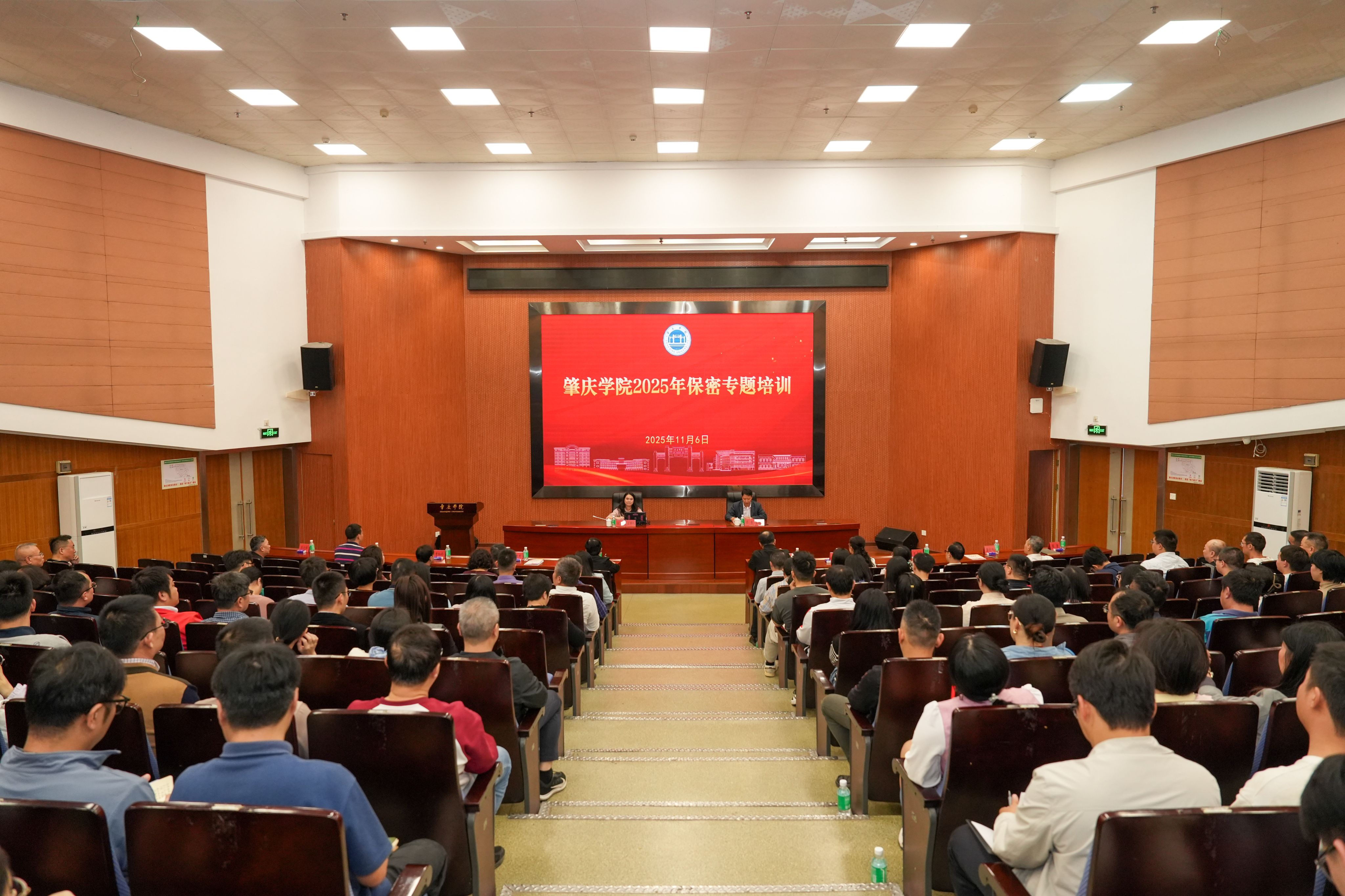 本網訊 為貫徹落實總體國家安全觀,筑牢校園保密安全防線,提高干部職工保密意識和保密技能,11月6日下午,我校舉辦2025年保密專題培訓會,肇慶市委機要保密局資深講師、綜合科科長陳慧玨來校作專題輔導。學校全體保密工作委員會成員、全體涉密人員、各單位科長、副科長、辦公室主任、副主任、教學秘書、教研秘書、收文員、全體輔導員等共計200多人參加培訓。