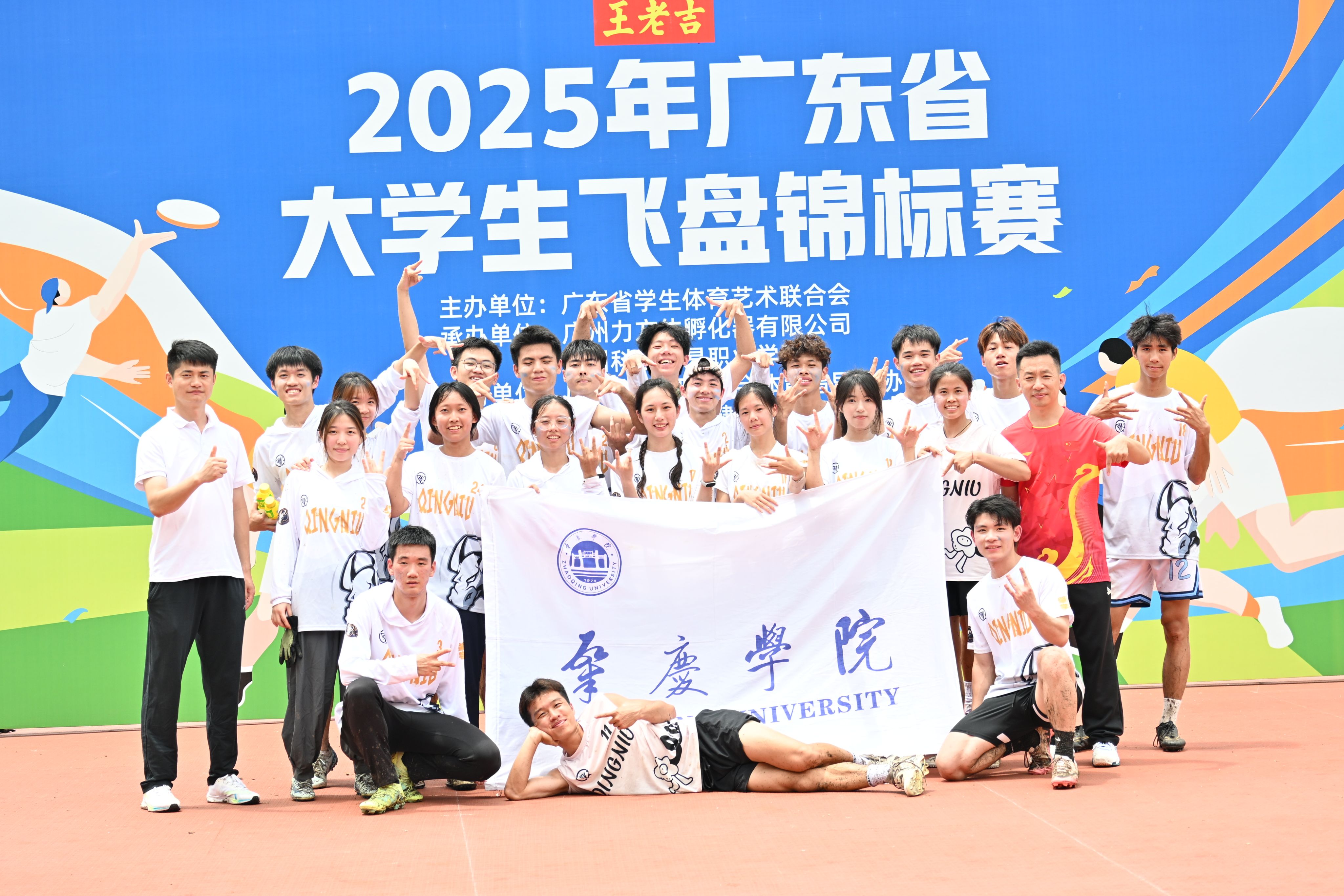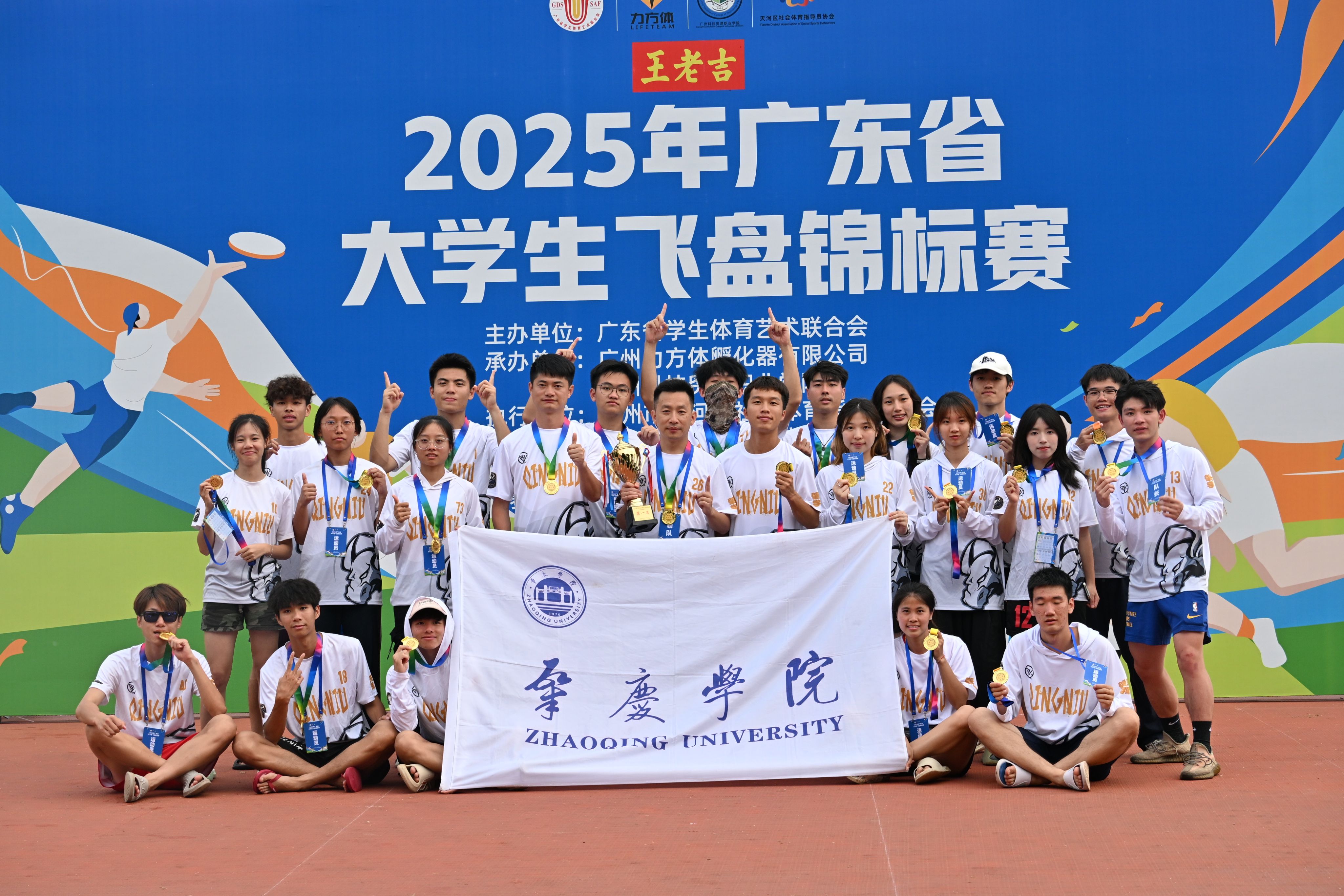 由領隊王娟,主教練楊博、查正輝帶領的肇慶學院飛盤隊在18所學校400名參賽人員中脫穎而出,最終獲得2025年廣東省大學生飛盤錦標賽極限飛盤團體賽(高水平組)第一名,實現了該項賽事該組別的成功衛冕。