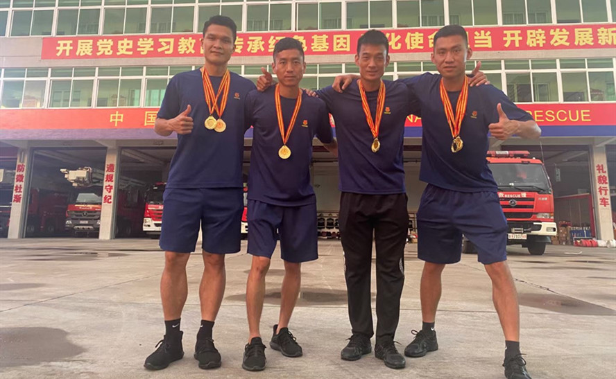 本網訊 7月24至26日,廣東省首屆消防員技能競賽在廣東省消防救援總隊訓保支隊舉行,我校武裝部、保衛處干部陳文勇所在的志愿隊榮獲400米消防接力第一名、多隊聯戰滅火救人操第五名的佳績。