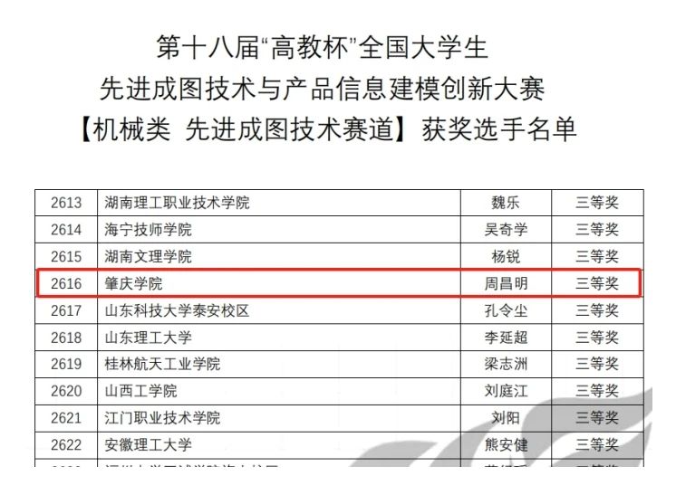 “高教杯”大賽由教育部工程圖學教指委與中國圖學學會聯合主辦,自2018年起納入全國高校學科競賽排行榜,旨在“以賽促教、以賽促學、以賽促改”。本屆比賽規模創歷史新高,最終有來自1001所院校的1.55萬名選手晉級總決賽。周昌明憑借扎實的專業能力與創新思維,展現了機械與汽車工程學院學子的優秀風貌。