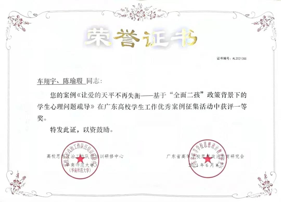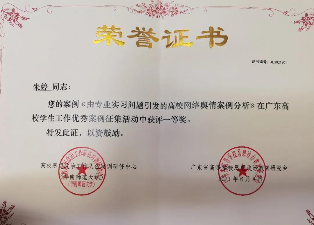 廣東高校學生工作優(yōu)秀案例征集活動一等獎