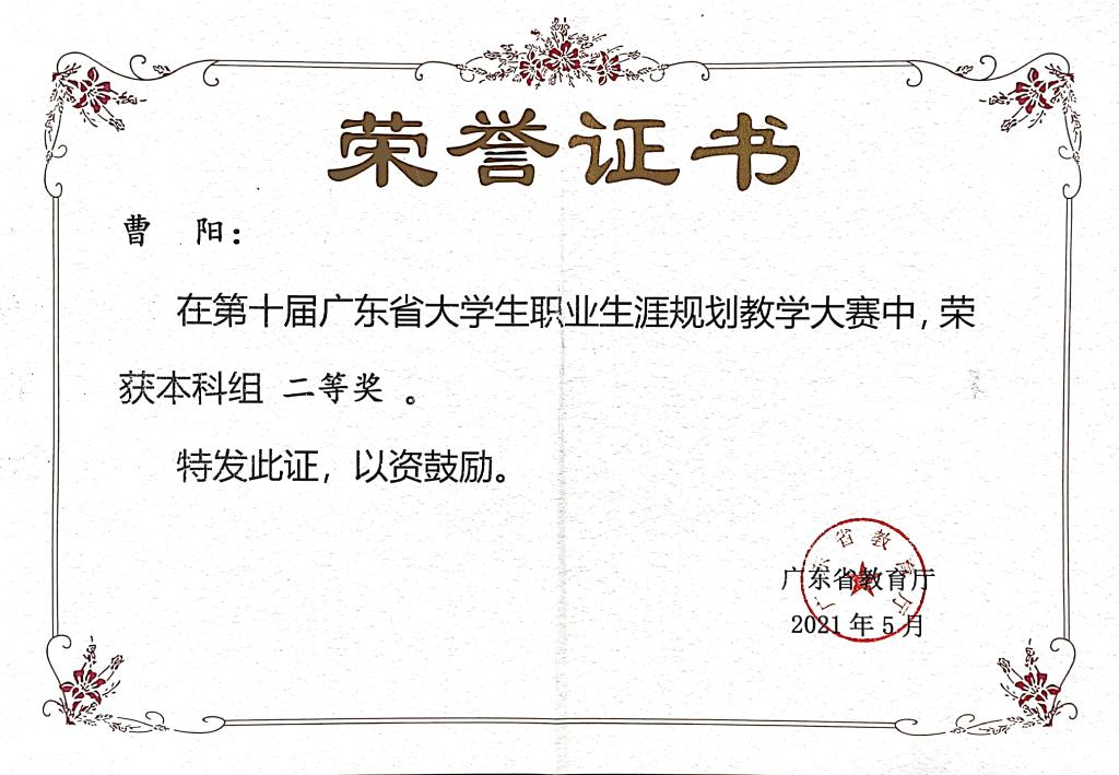 第十屆廣東省大學生職業(yè)生涯規(guī)劃教學大賽本科組二等獎