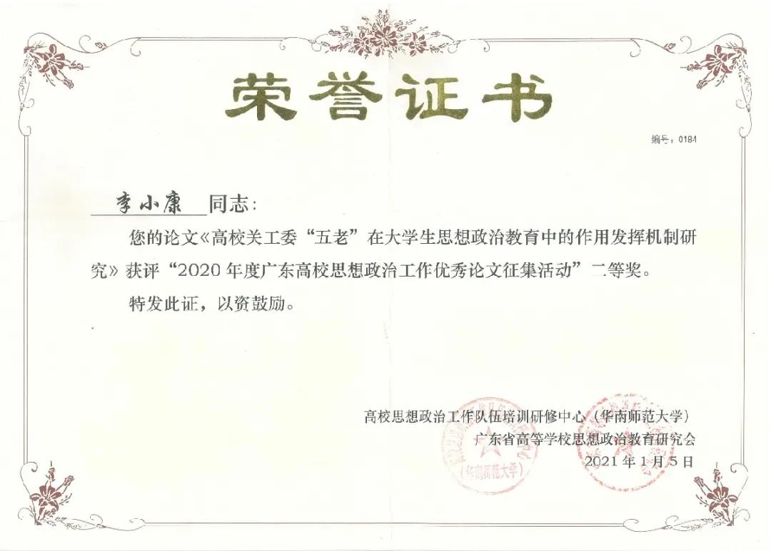 “廣東高校思想政治工作優(yōu)秀論文”二等獎