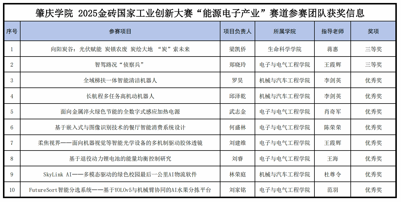 本網訊 8月20日至21日,2025金磚國家工業創新大賽“能源電子產業”賽道選拔賽于廣東肇慶舉行。由創新創業學院組織,來自電子與電氣工程學院、機械與汽車工程學院等二級學院組成的師生參賽團隊表現優異,共有10個項目成功入選本次選拔賽。其中,《向陽炭谷:光伏賦能 炭鎖農廢 炭繪大地 “炭”索未來》與《智駕路況“偵察兵”》憑借其創新的技術理念、扎實的研究基礎、良好的應用前景,榮獲大賽三等獎。其余8個項目也以其獨特創意和潛力獲得優秀獎。