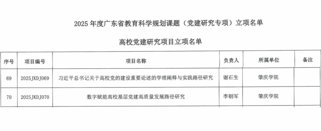 本網(wǎng)訊 近日,廣東省教育科學(xué)規(guī)劃領(lǐng)導(dǎo)小組辦公室公布了2025年度廣東省教育科學(xué)規(guī)劃課題(黨建研究專項)立項結(jié)果。