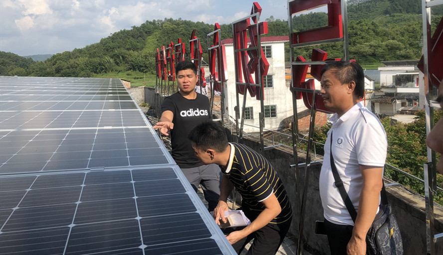 脫貧需要多管齊下。第一顆紐扣扣好以后,陳劍平和他的團隊齊心協(xié)力,想出了開展“資產(chǎn)收益項目”這一招。工作隊根據(jù)貧困戶開展項目的意愿,籌集資金在村委會辦公樓樓頂集中安裝太陽能光伏發(fā)電站——廣寧橫山地處低緯度地區(qū),太陽輻射強,太陽能發(fā)電板收集到的能源,既可自用,又可出售,從而增加貧困戶收入。
