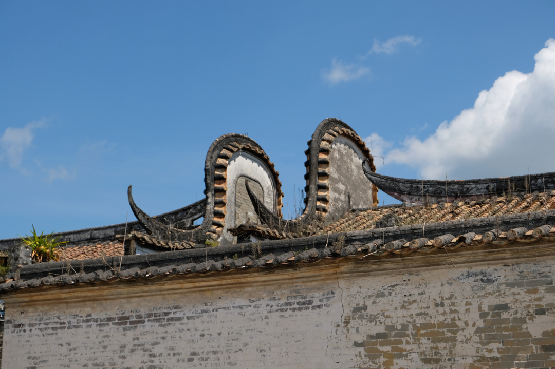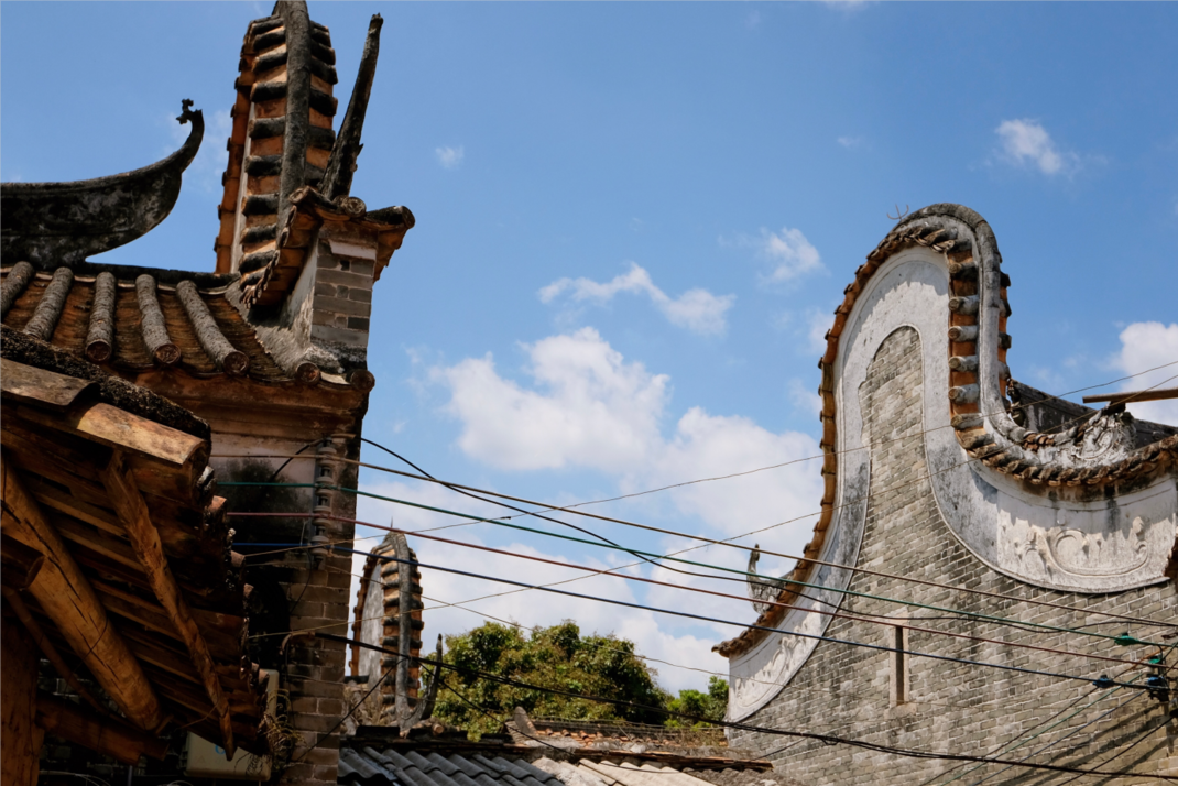 上寨村歷史底蘊深厚,村內(nèi)的13間青磚鑊耳屋于清朝建成,屋舍坐北向南、縱橫整齊,統(tǒng)一使用的鑊耳式封火山墻使這片古建筑群獨具特色。檐板雕花,外墻楣有灰塑,在總體風格一致的同時,每間屋子的雕花、灰塑又各不相同,處處展示著百年前的匠心獨運。