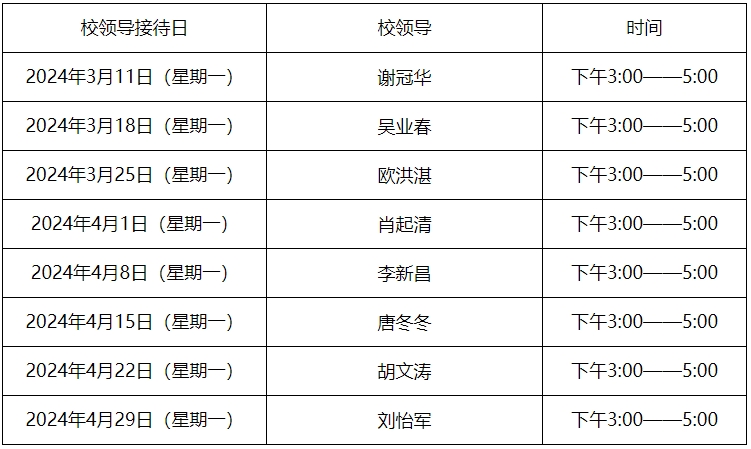 2024年春季學(xué)期校領(lǐng)導(dǎo)接待日安排表