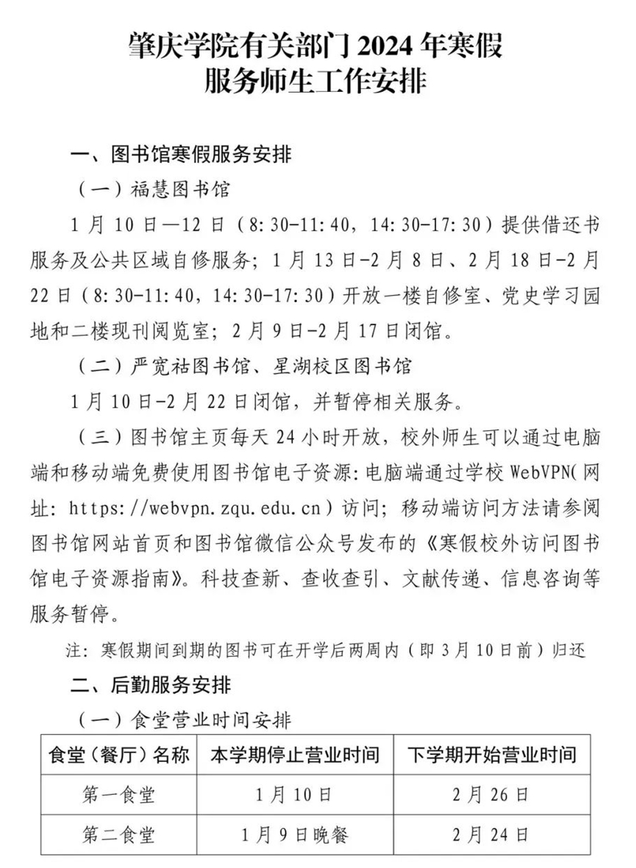 當然啦!有需要晚走的小伙伴們,一定要仔細閱讀《肇慶學院有關部門2024年寒假服務師生工作安排》。