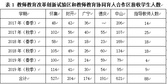 我校將教師教育作為立校之本,秉承“教師教育一體化,培養(yǎng)目標卓越化,三位一體協(xié)同化,協(xié)同育人開放化”的辦學(xué)理念,全校共有67個專業(yè),其中傳統(tǒng)師范類專業(yè)14個,其他專業(yè)均兼招師范生。我校擁有廣東省(肇慶學(xué)院)中小學(xué)教師發(fā)展中心、廣東省(肇慶學(xué)院)普通話測試站和肇慶地區(qū)鄉(xiāng)村卓越教師協(xié)同育人平臺,建立了懷集、封開、廣寧和德慶共四個教師教育改革創(chuàng)新試驗區(qū)和中山市古鎮(zhèn)鎮(zhèn)、橫欄鎮(zhèn)、大涌鎮(zhèn)共三個教師教育協(xié)同育人合作區(qū)。