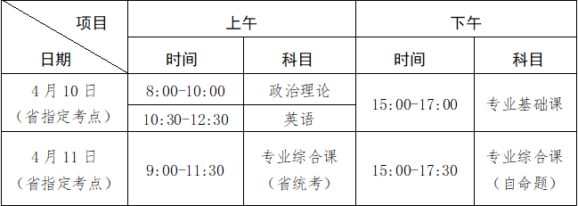 考試科目為四門,總分共500分。其中《政治理論》、《英語》和《專業(yè)基礎(chǔ)課》滿分各為100分,每科考試時間為120分鐘;《專業(yè)綜合課》滿分為200分,考試時間為150分鐘。