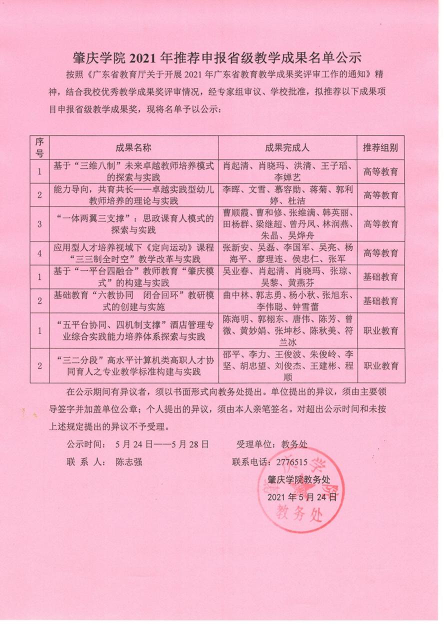 按照《廣東省教育廳關于開展2021年廣東省教育教學成果獎評審工作的通知》精神,結合我校優秀教學成果獎評審情況,經專家組審議、學校批準,確定推薦申報省級教學成果獎名單,具體情況如圖。