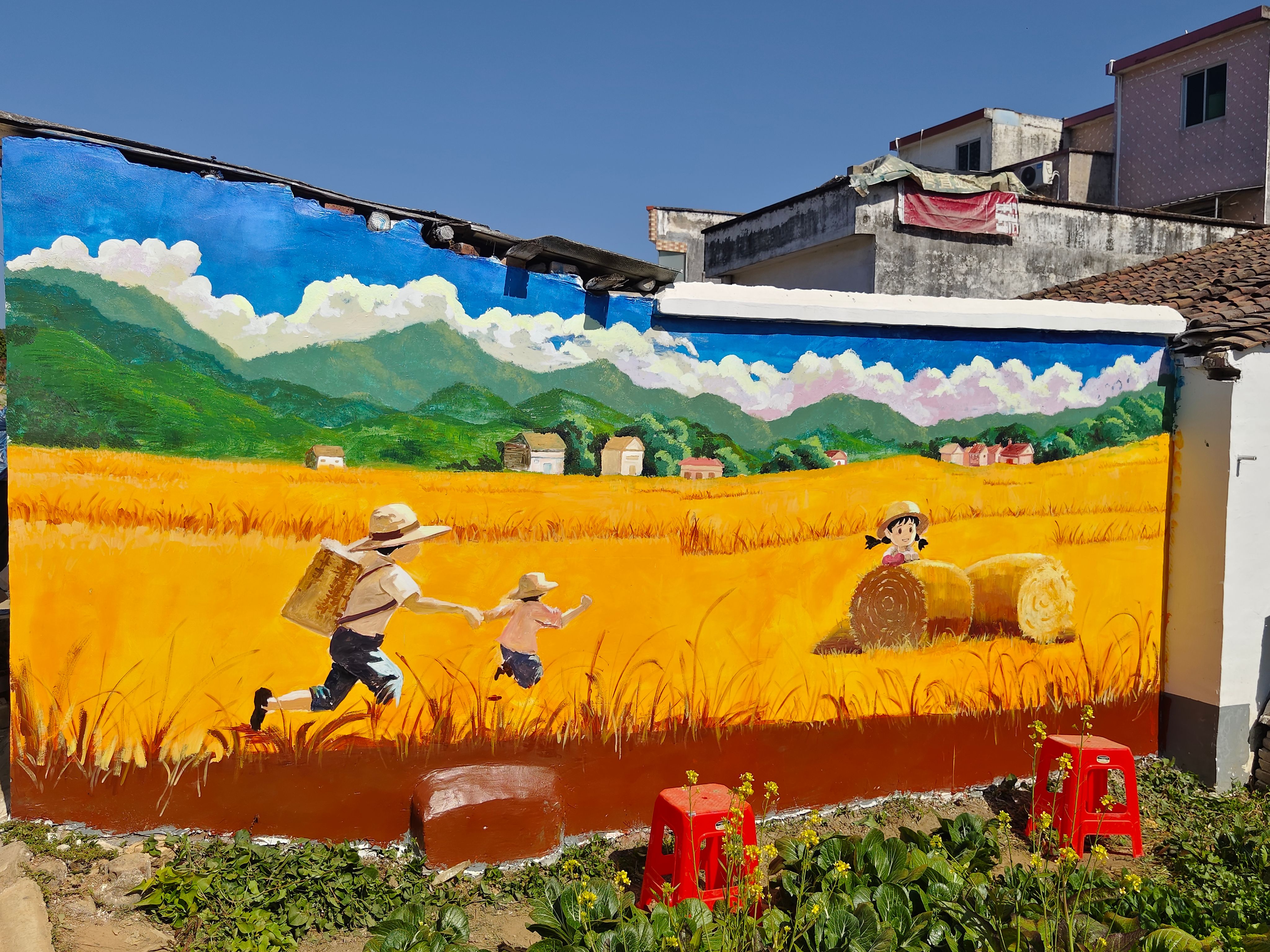 本次墻繪面積近200平方米,以“春夏秋冬”為主題,結合了當地自然景觀、人文風情及農業生產等元素。