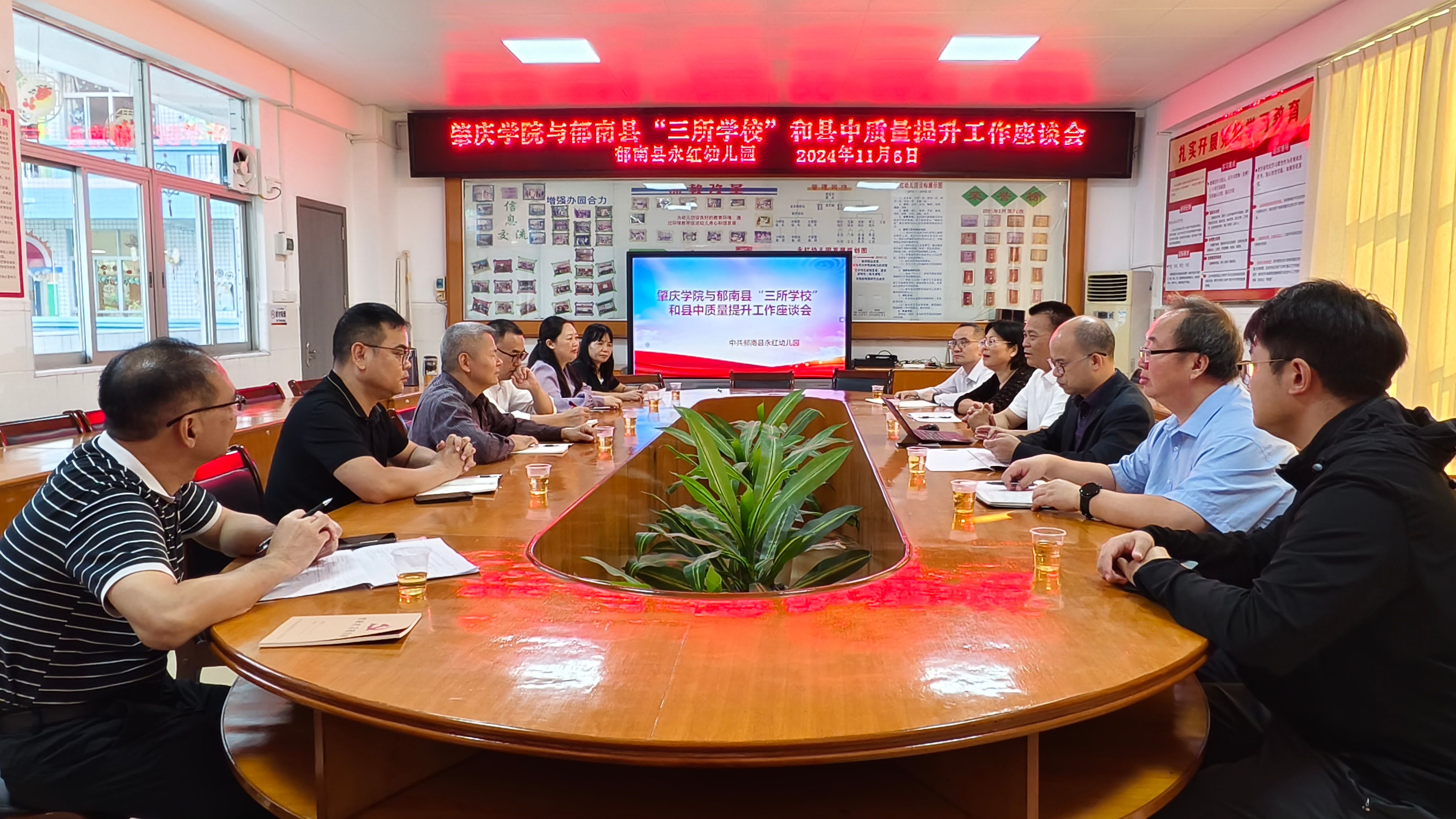 郁南縣副縣長楊桂平,教育局副局長謝行芝,郁南縣教師發展中心、學校(幼兒園)主要負責人分別參加考察和研討。張傳德詳細介紹了近年來郁南教育工作情況和存在問題,希望持續借力“雙百行動”,搭建更多合作平臺,推動郁南基礎教育課程改革,助力郁南教育高質量發展。雙方就相關助力工作進行了具體而詳細的交流和探討,首先計劃分批次、分層次、有針對性地開展系列師資培訓,涵蓋骨干教師研修班、校長高端研修班等專題。