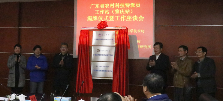 本網訊 2月26日,由我校牽頭和聯合肇慶市農校、肇慶市農科所共同組建的廣東省農村科技特派員工作站(肇慶站)在我校揭牌。校長助理黃金,肇慶市科技局局長陳漢華,科技處、社科處、校地合作處處長胡海建,副處長周麗等領導出席揭牌儀式。