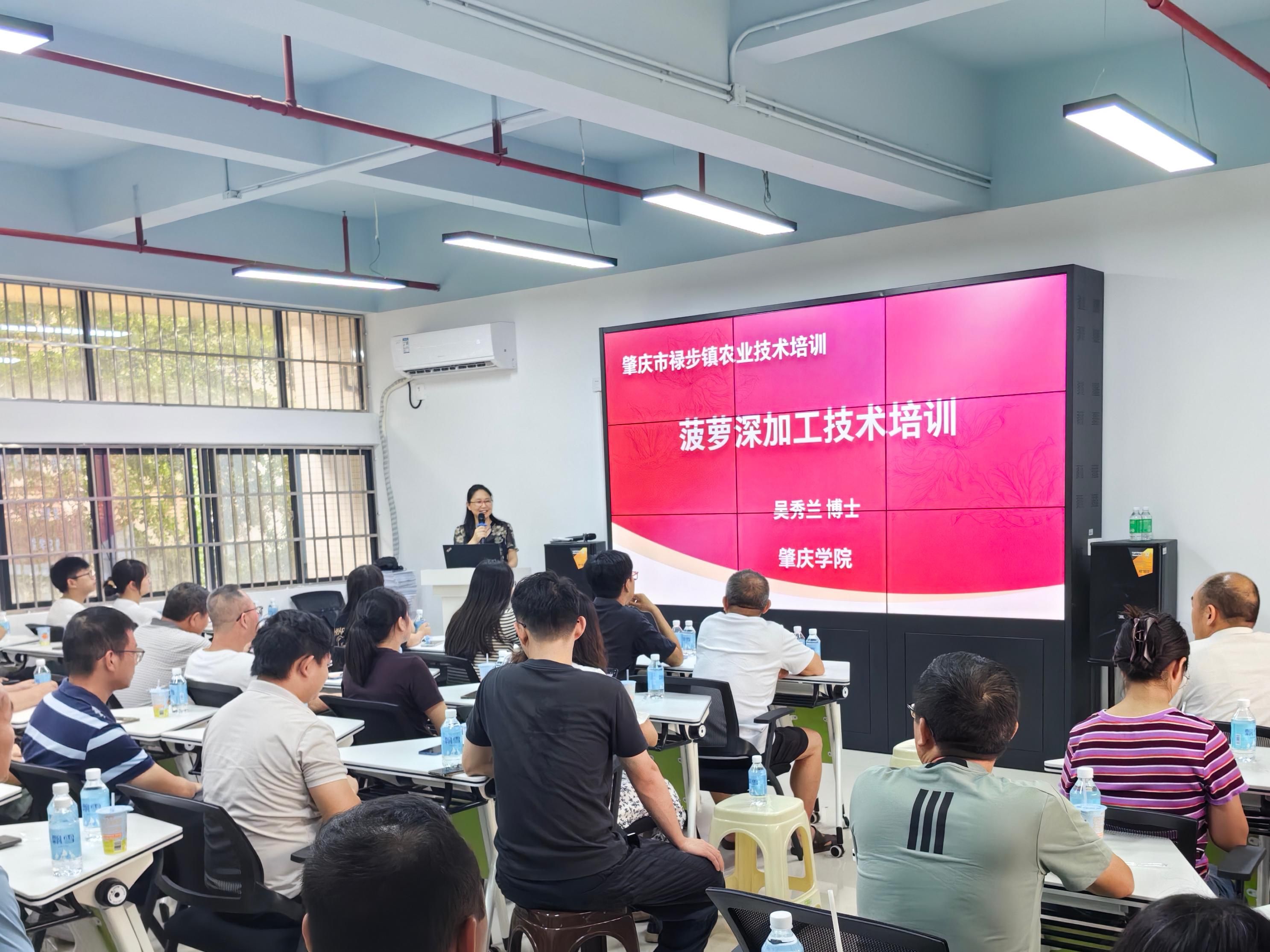 本網訊 一顆金黃飽滿的雙馬菠蘿,如何突破鮮果銷售的季節局限,蛻變為市場青睞的高附加值產品?6月18日,一場以“科技賦能產業升級,深加工助力鄉村振興”為主題的雙馬菠蘿深加工技術培訓會在肇慶學院舉行。祿步鎮駐鎮工作隊隊長胡昌超帶領種植戶、合作社代表、農技人員等41名“新農人”,帶著產業升級的迫切需求,走進高校實驗室尋找答案。