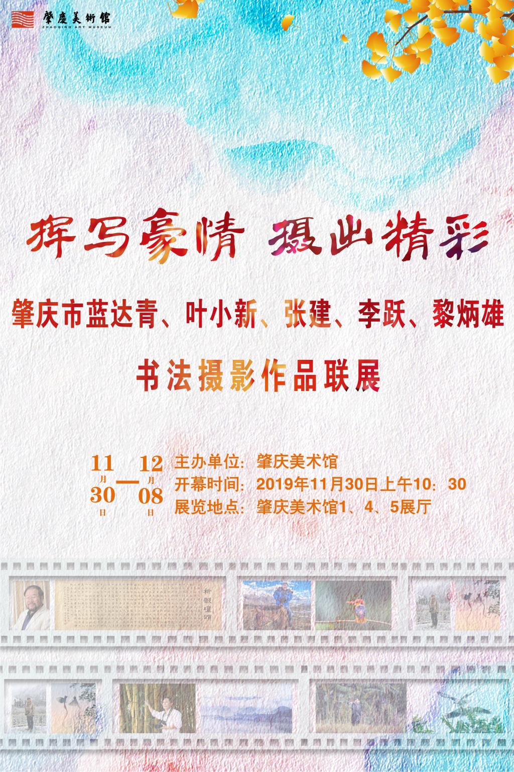 本次展覽由肇慶美術館主辦,以“揮寫豪情 攝出精彩”為主題,展示藍達青與李躍的書法作品,以及他們與葉小新、張建、黎炳雄五人的攝影作品。