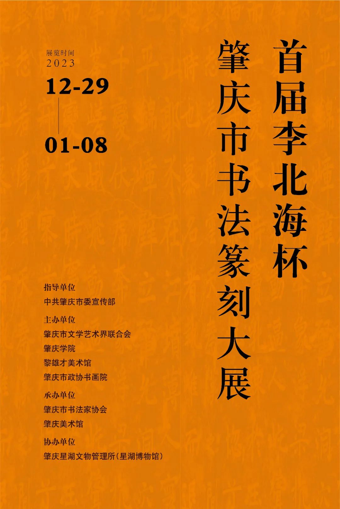 指導單位中共肇慶市委宣傳部主辦單位肇慶市文學藝術界聯合會肇慶學院黎雄才美術館肇慶市政協書畫院承辦單位肇慶市書法家協會肇慶美術館協辦單位肇慶星湖文物管理所(星湖博物館)