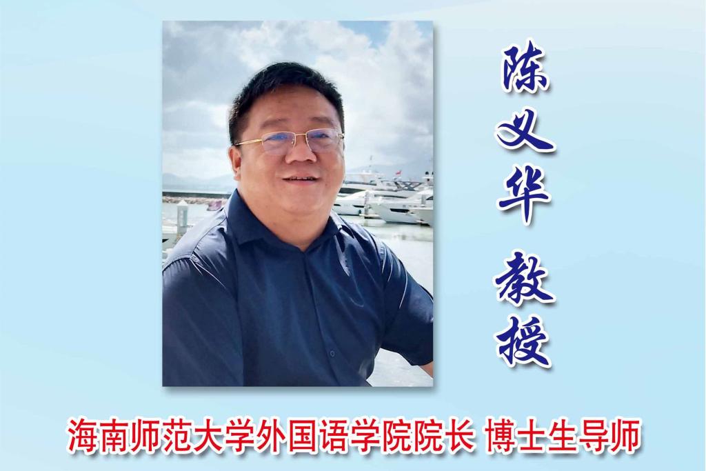 陳義華教授,博士生導師,國家民委南盟國家研究中心主任、海南師范大學外國語學院院長、區域國別研究院院長、海南省領軍人才、海南省外語類本科教學指導委員會副主任、海南比較文學學會副會長、中國語言教育研究會常務理事、中國語言服務教育聯盟常務理事、國家社科基金通訊評審與成果鑒定專家。