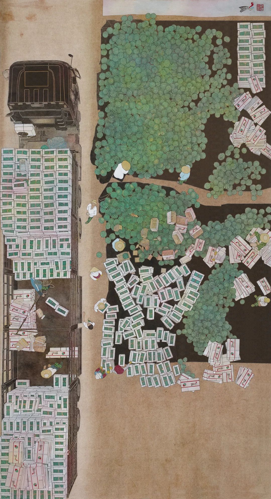 涂建坤《瓜田香里說豐年》,紙本設色,96×177cm