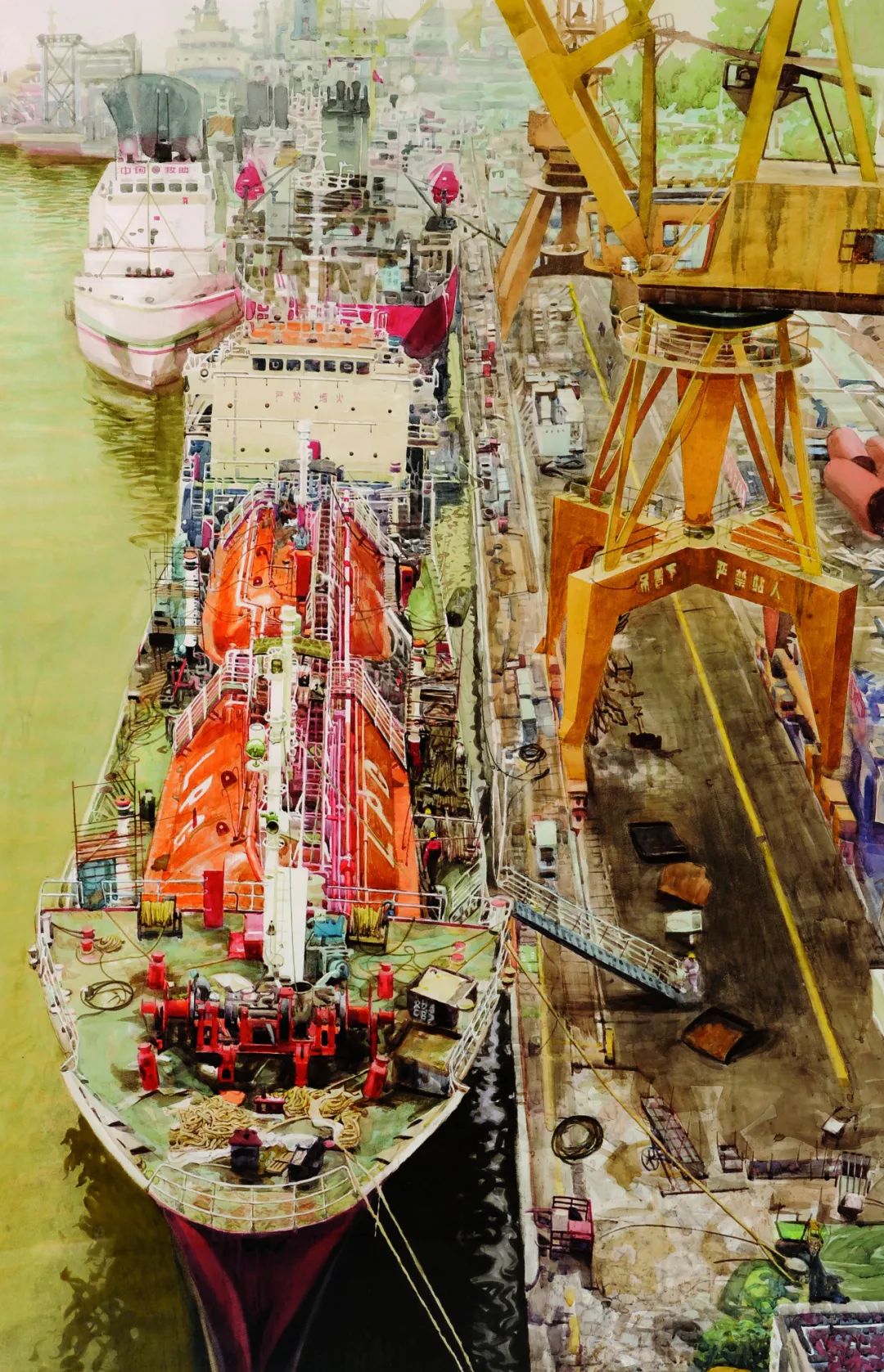 青春時期在繪畫方面的苦練,給我們人生帶來很大變化。遠閣后來從搬運工變成出版社的美術編輯,我卻在國外畫行開辟新生活,一別就40年了。我聽聞遠閣兼任多個文藝美術部門的工作,對美術界作出了很多貢獻,其美術創作范圍已大大擴闊了,比如: 粵劇系列、印尼系列、舞蹈系列等等,成績有目共睹,其中《同一首歌》《船臺交響》《家園》給我印象特別深。從心里為他高興!