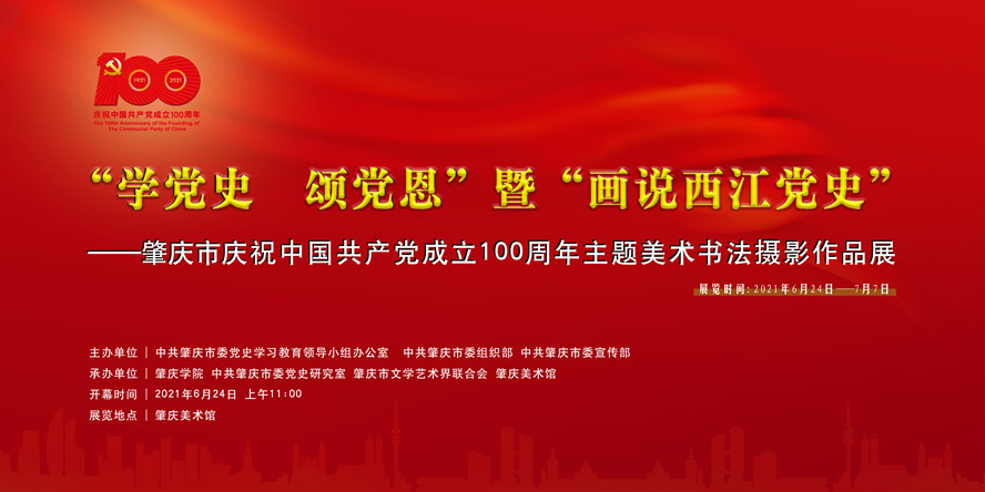 習(xí)近平總書記指出,以史為鏡、以史明志,知史愛黨、知史愛國。在全黨開展黨史學(xué)習(xí)教育,是黨中央立足黨的百年歷史新起點、統(tǒng)籌中華民族偉大復(fù)興戰(zhàn)略全局和世界百年未有之大變局、為動員全黨全國滿懷信心投身全面建設(shè)社會主義現(xiàn)代化國家而作出的重大決策。按照中央的決策部署以及省委、市委的工作安排,中共肇慶市委黨史學(xué)習(xí)教育領(lǐng)導(dǎo)小組辦公室、中共肇慶市委組織部、中共肇慶市委宣傳部主辦,肇慶學(xué)院、中共肇慶市委黨史研究室、肇慶市文學(xué)藝術(shù)界聯(lián)合會、肇慶美術(shù)館承辦肇慶市“學(xué)黨史、頌黨恩”暨“畫說西江黨史”——慶祝中國共產(chǎn)黨成立100周年主題美術(shù)書法攝影作品展,以藝術(shù)的形式回顧黨的光輝歷程、謳歌黨的豐功偉績,表達肇慶人民愛黨愛國之情感,教育全市廣大黨員干部、青少年學(xué)習(xí)發(fā)揚紅色傳統(tǒng)、傳承紅色基因、賡續(xù)共產(chǎn)黨人精神血脈,激勵全市上下學(xué)黨史、悟思想、辦實事、開新局。