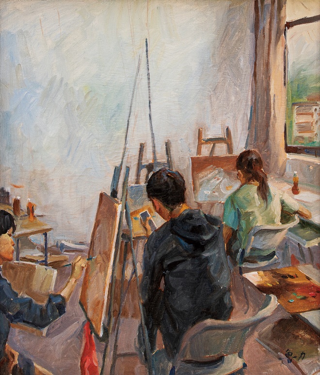 這是一個以展覽促教學、促科研最為典型的繪畫專業教學的展覽,同時也是一個與時代同行的好展覽。展覽中的作品包括素描、油畫兩大類,其中油畫包含了寫生和創作的內容。寫生中有風景、人像、人體寫生、場景速寫;創作包含主題性創作、風俗畫創作、肖像畫創作。所有這些內容都與他在工作期間擔任的教學課程內容直接相關,可以看作是他在實際教學過程中針對每一門課程的教案——即一個專業教師教案的圖像版。因此,這個展覽沒有過多強調他的藝術理念或反映時代的藝術風潮,僅僅是一種態度的表露。