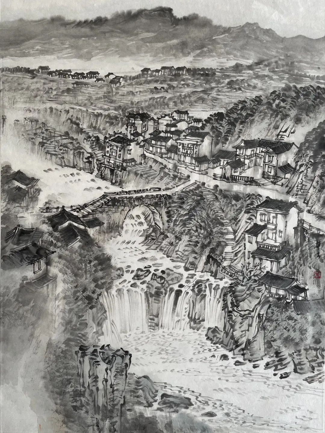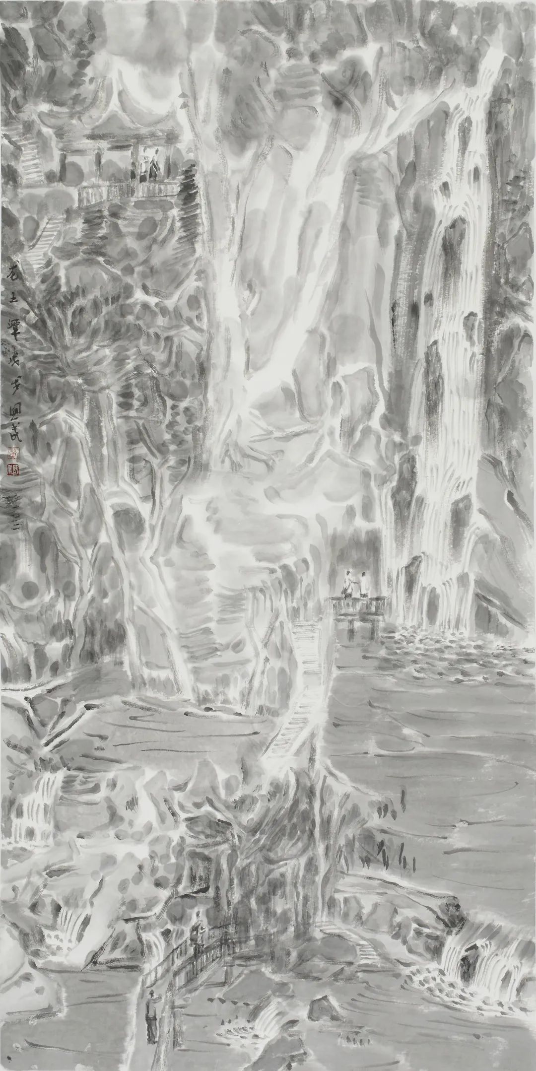 黃國武《井崗龍?zhí)讹w女瀑》 紙本墨筆 138×69.5cm 2022年