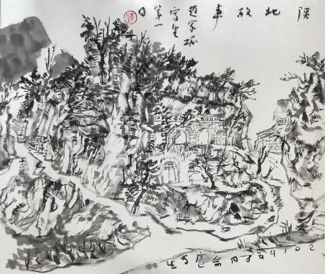 陳映欣《陜北故事》 紙本墨筆 38x45cm