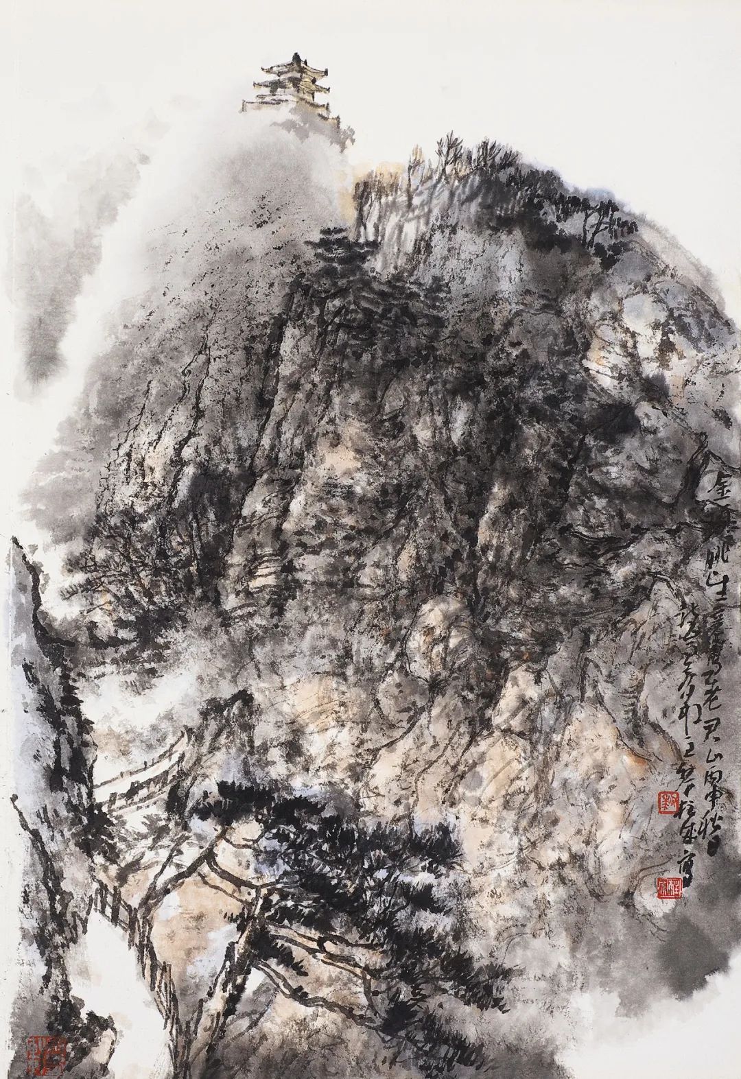 黎柱成《金頂遠(yuǎn)眺》 紙本設(shè)色 44x30cm 2016年