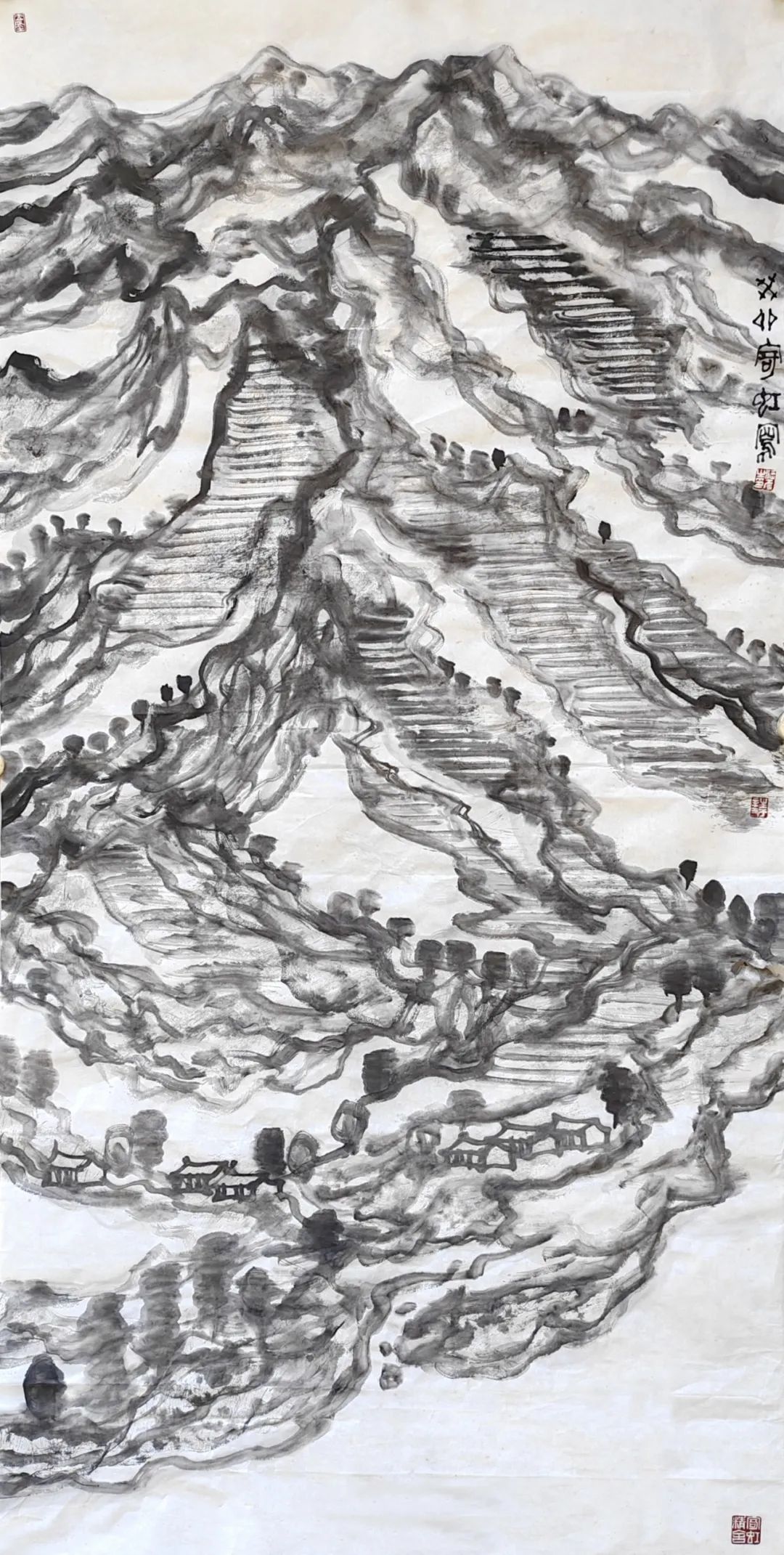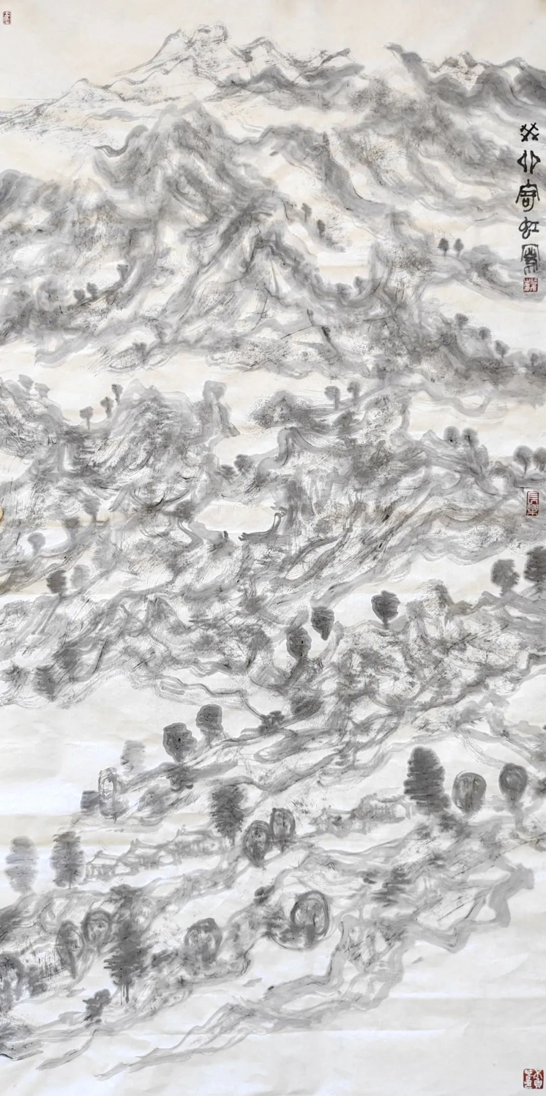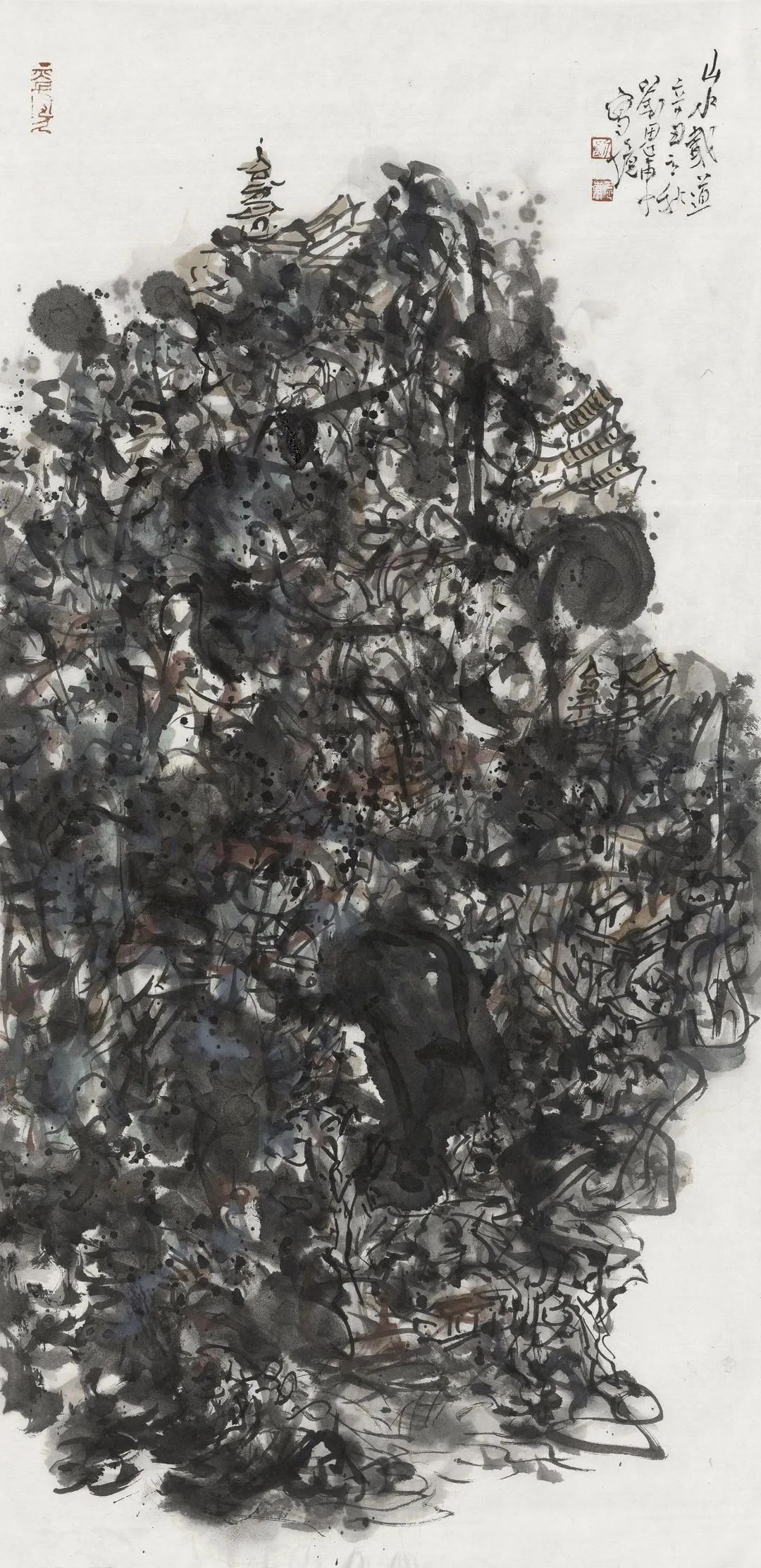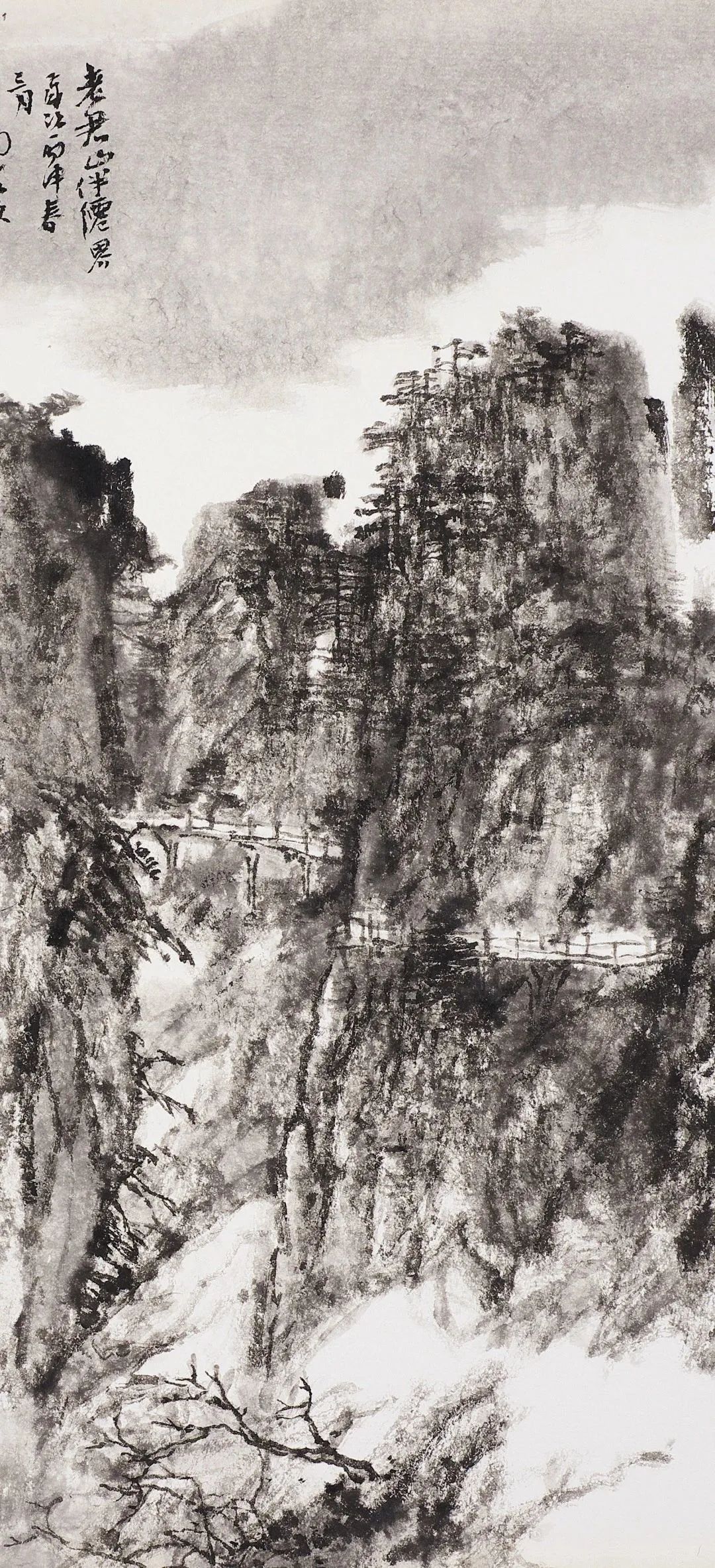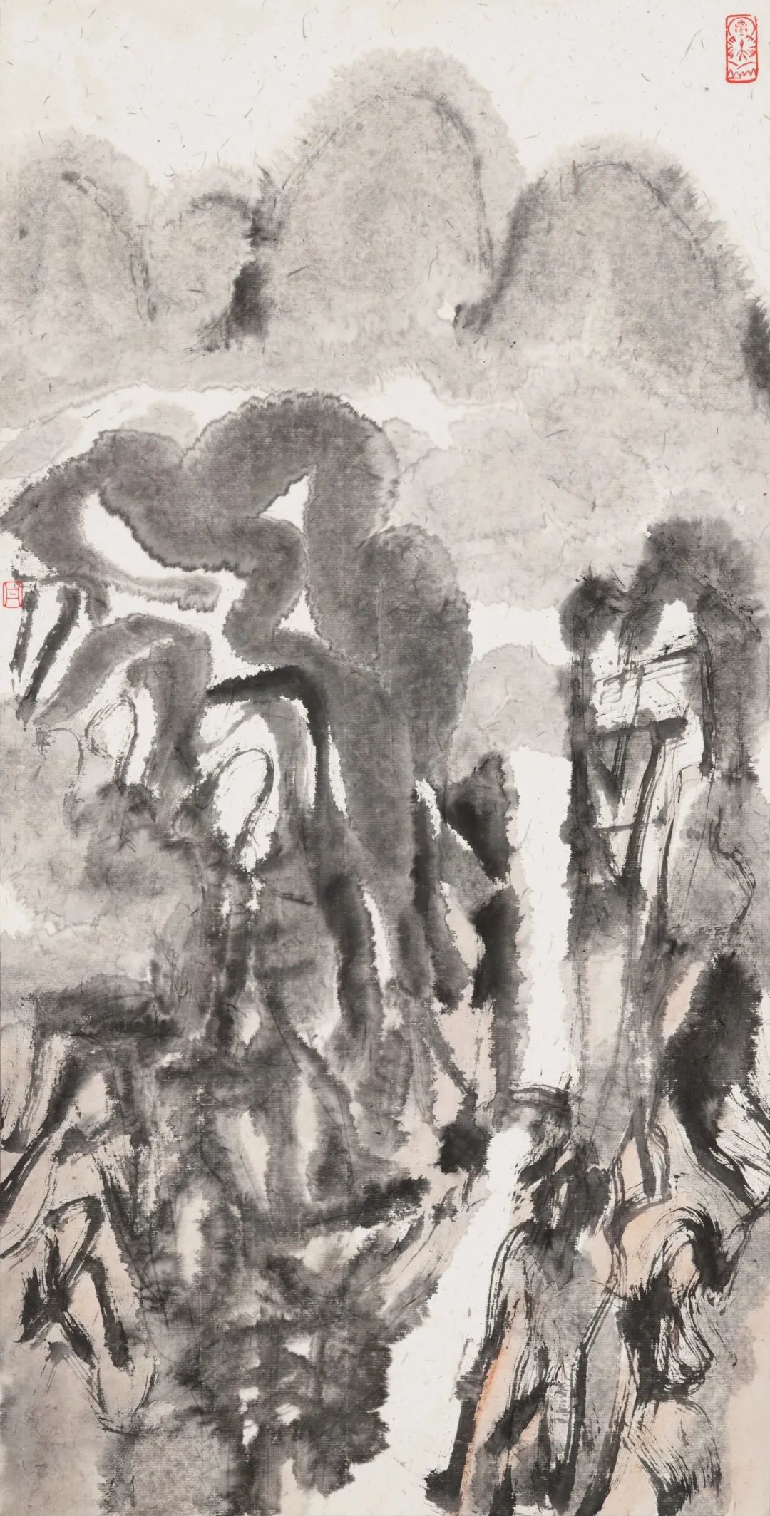 蔡擁華《不辯仙山何處尋》 紙本墨筆 138×69cm 2021年