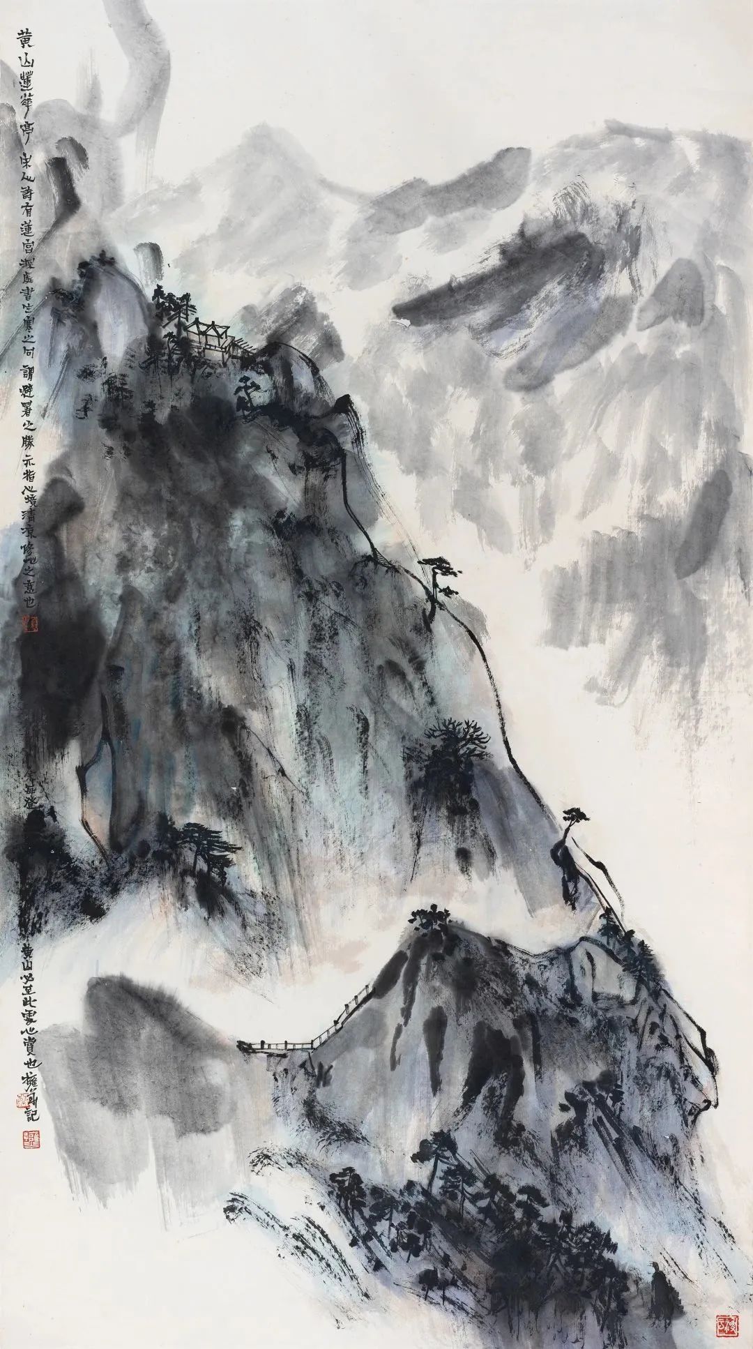 蔡擁華《黃山蓮花亭》 紙本設(shè)色 150×82.5cm 2022年