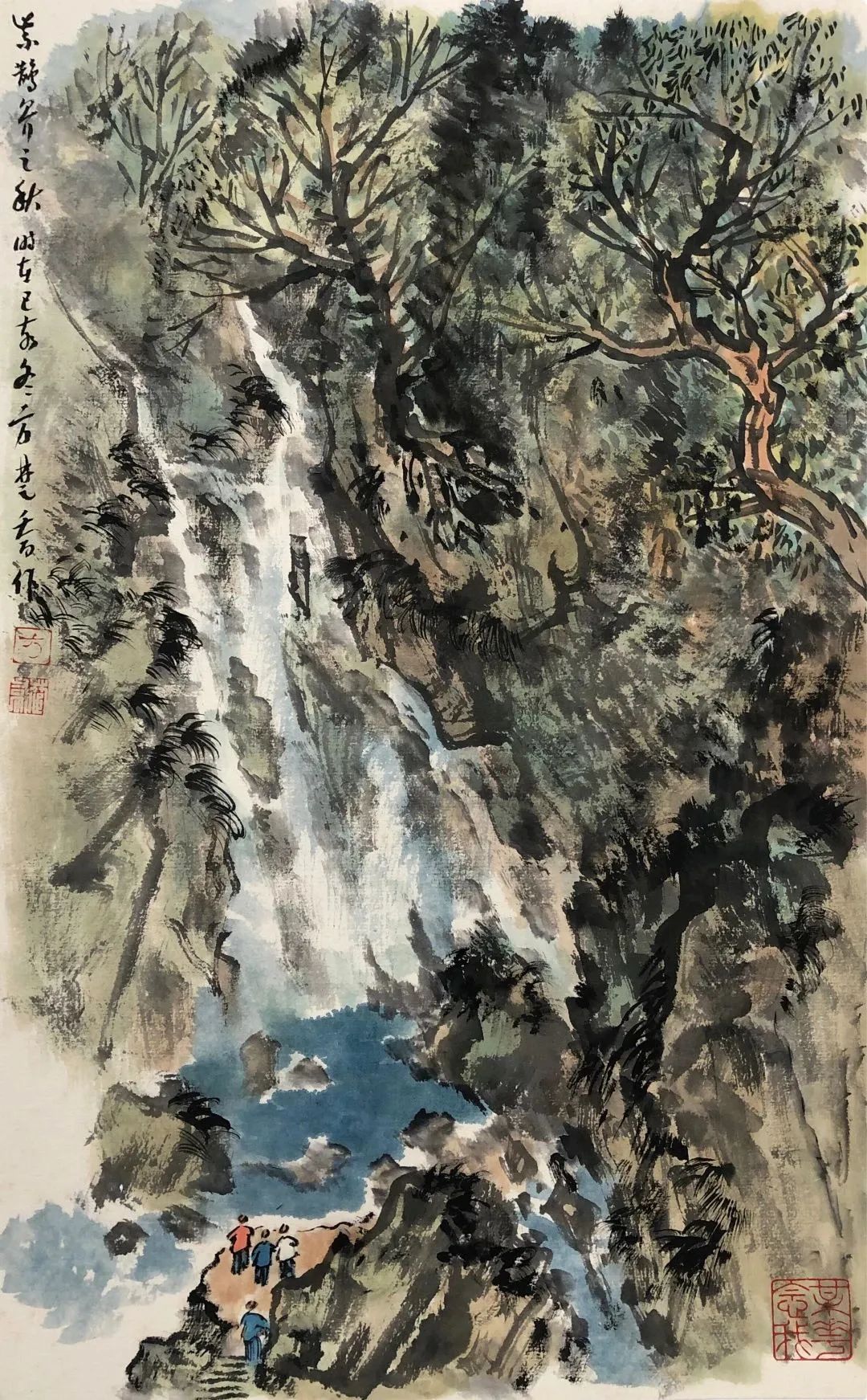 陳粵丹《山谷清音》 紙本設(shè)色 65x33cm