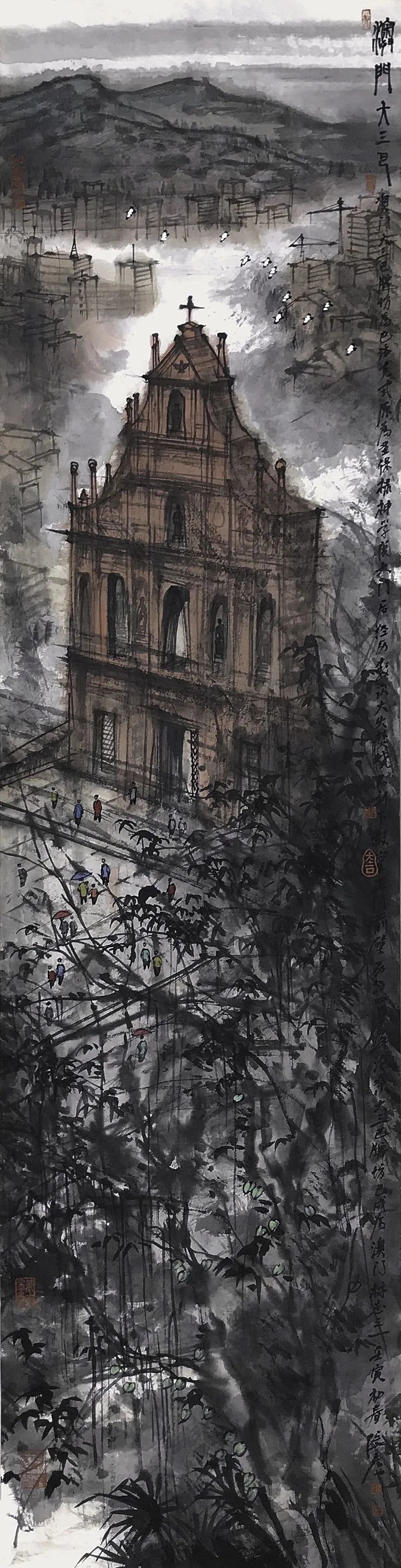 張彥《澳門大三巴》 紙本設(shè)色 2022年