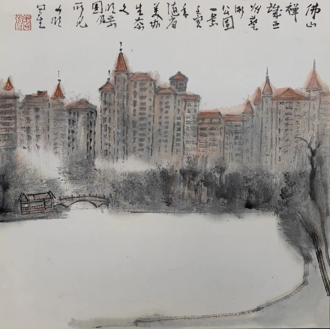 潘小明《佛山亞藝公園一景》 紙本設(shè)色 38x38cm 2022年