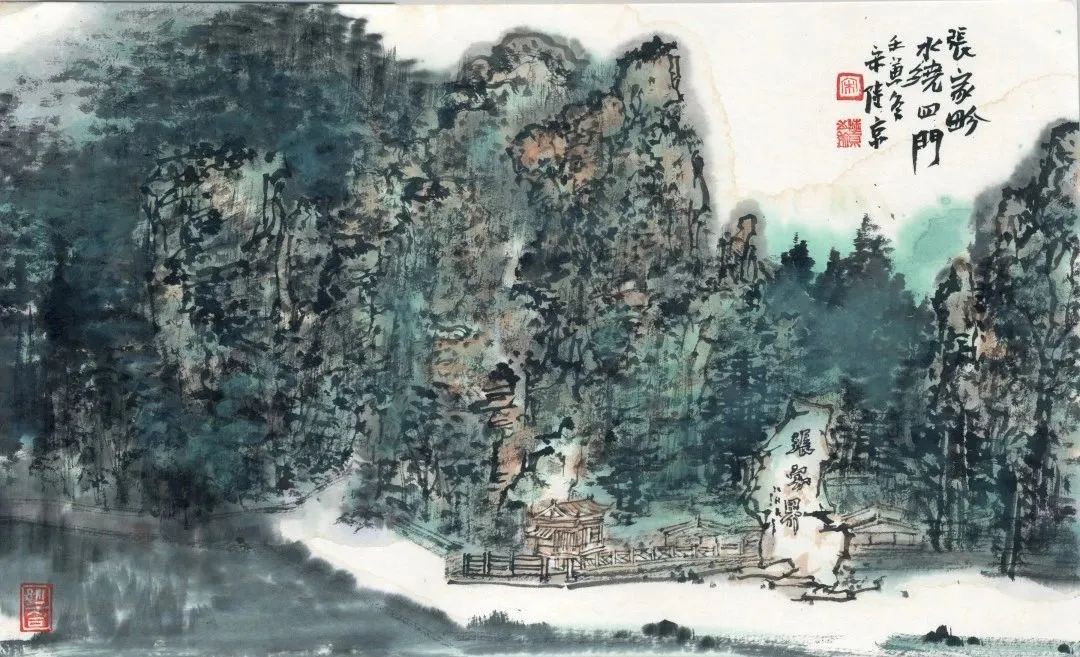 宋陸京《張家界水繞西門》 紙本設(shè)色 39x65cm 2022年
