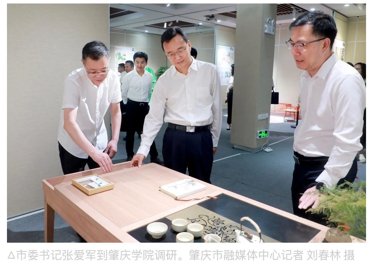 張愛軍首先來到黎雄才美術館,認真參觀肇慶學院“百千萬工程”美術設計作品展覽,并與該校美術學院、設計學院等師生親切交談。張愛軍對肇慶學院發揮學科專業優勢服務“百千萬工程”,推動大批優秀美術設計作品賦能鄉村振興表示肯定,鼓勵該校廣大師生牢牢把握“百千萬工程”這一重要契機,圍繞中心、服務大局,深入基層一線,在鄉村廣闊天地揮灑汗水、施展才華,以青春之你我成就奮進之肇慶。