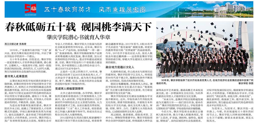 正是在一以貫之的努力下,50年來,肇慶學院共培養了近20萬名各類優秀人才,廣大畢業學子備受歡迎,成為各行各業的精英、骨干、楷模、標兵,在地方經濟社會發展的進程中發揮了積極的作用。