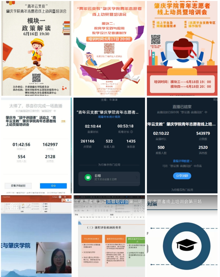 為讓志愿者早日成為稱職的老師,肇慶學院圍繞“政策解讀”、“教育教學實踐與應用”、“線上平臺及網絡直播技術”、“i志愿平臺支教專區操作指引”四個模塊,對志愿者開展為期3天的線上培訓。